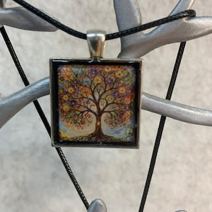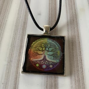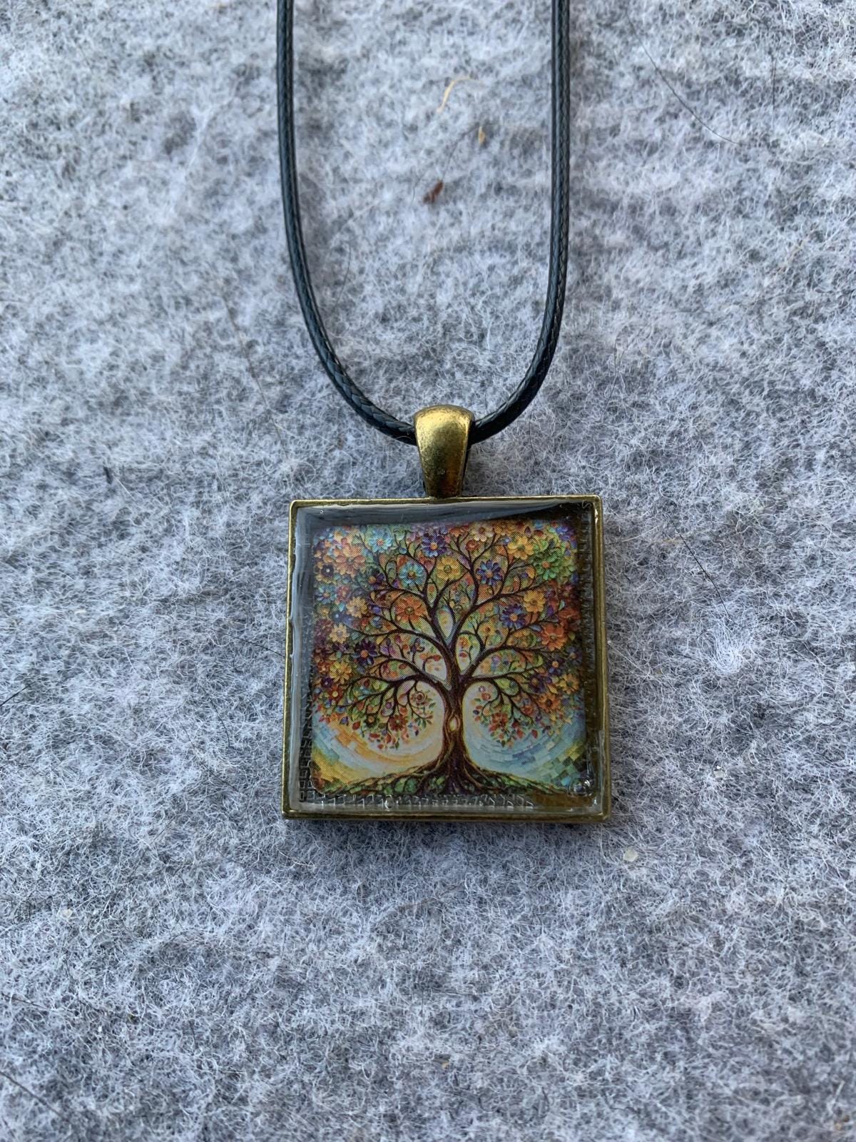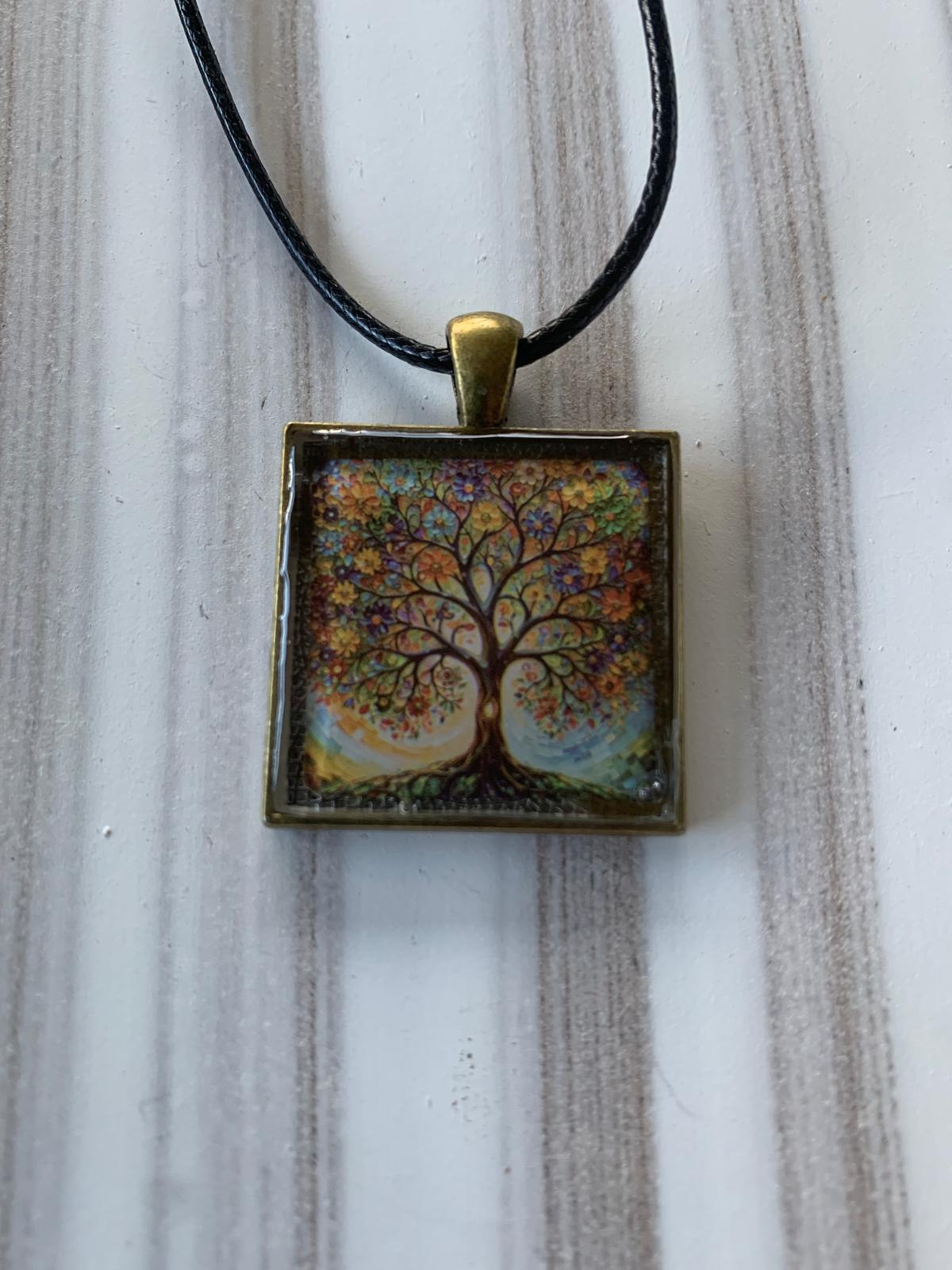 Beautiful vintage pendant with tree of life on a black faux leather chain, my own creation.