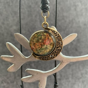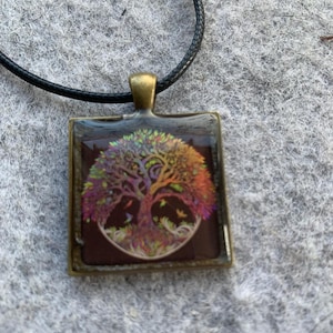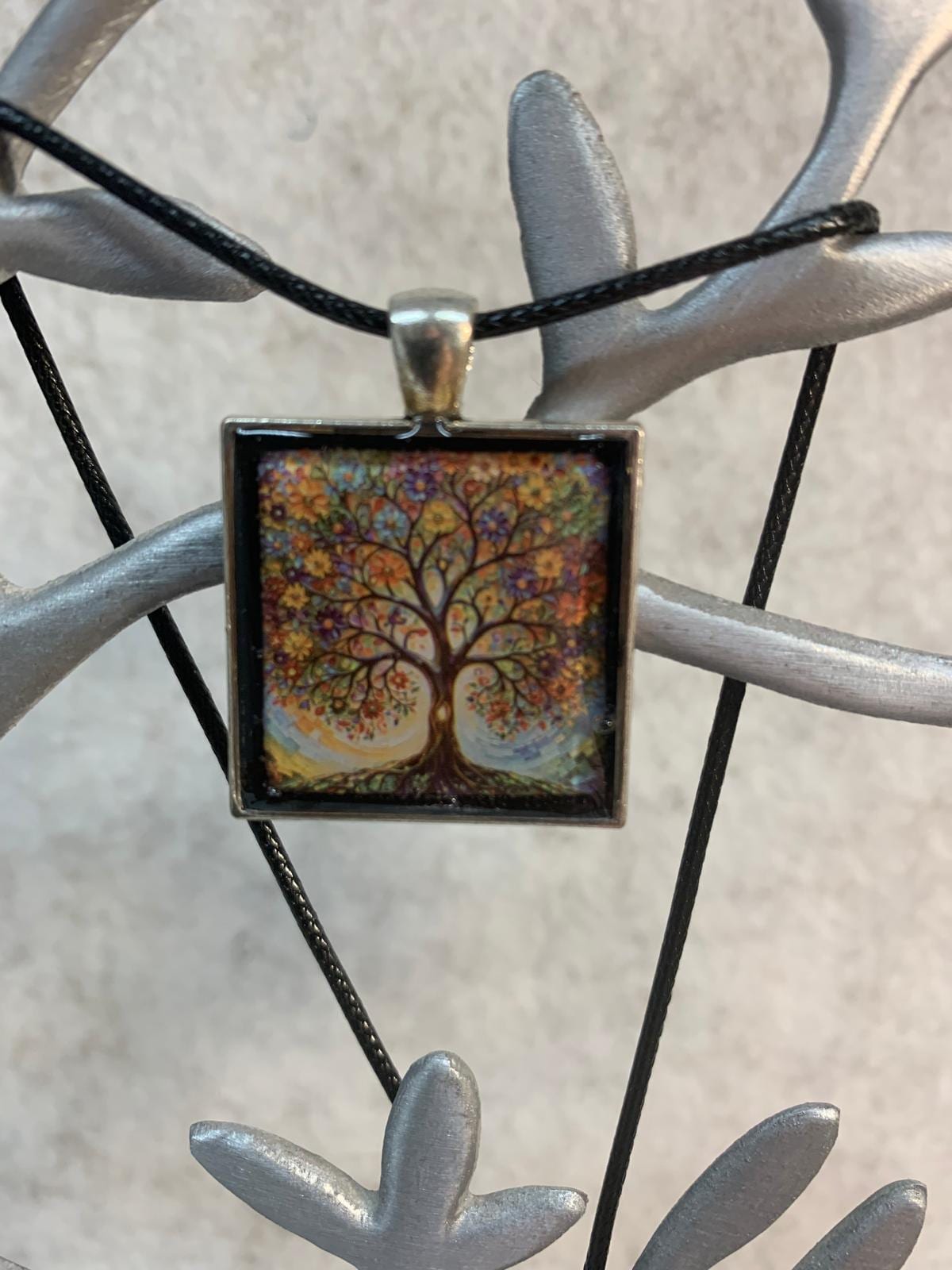 Beautiful pendant with tree of life on a black faux leather chain, my own creation.