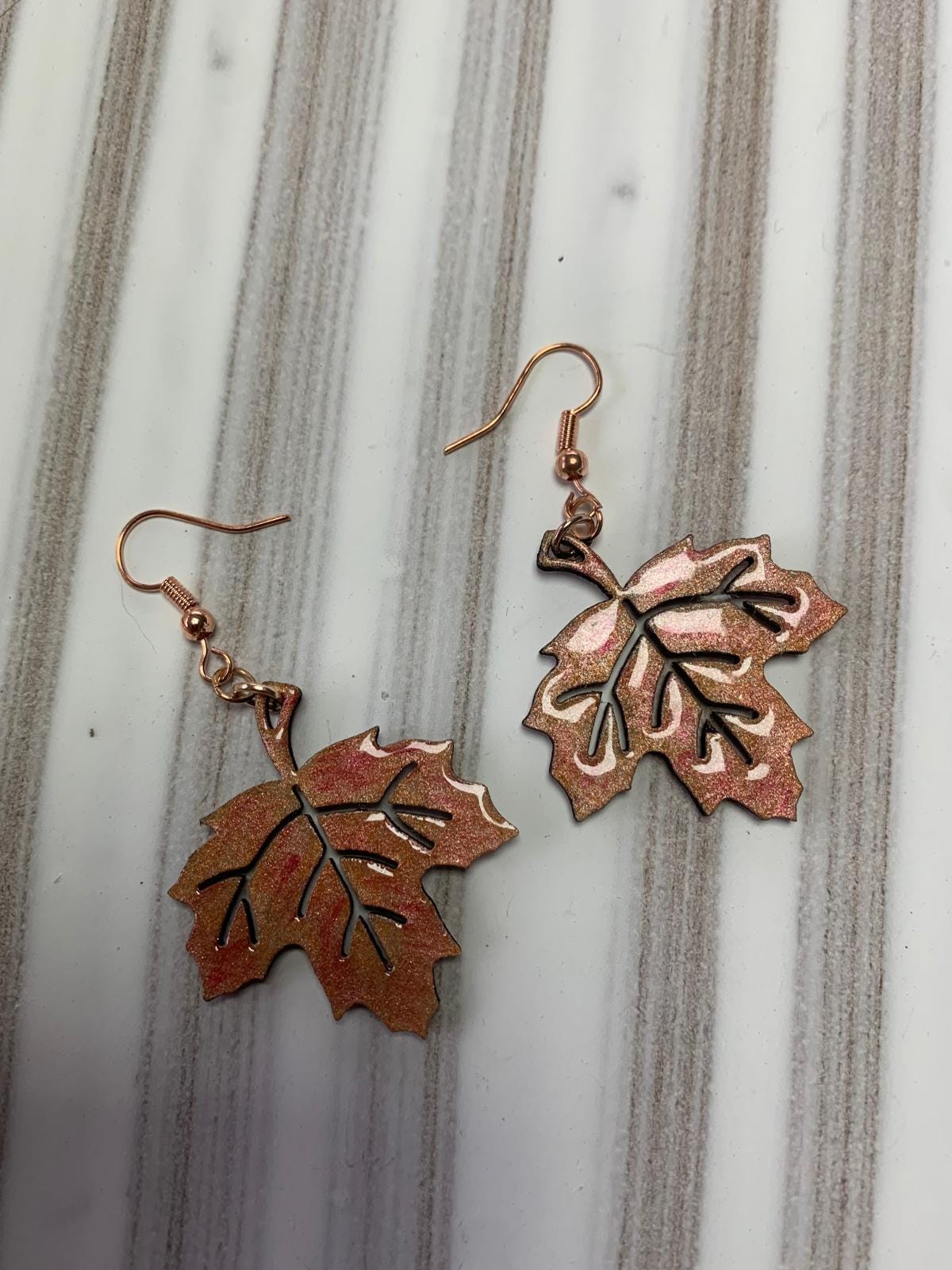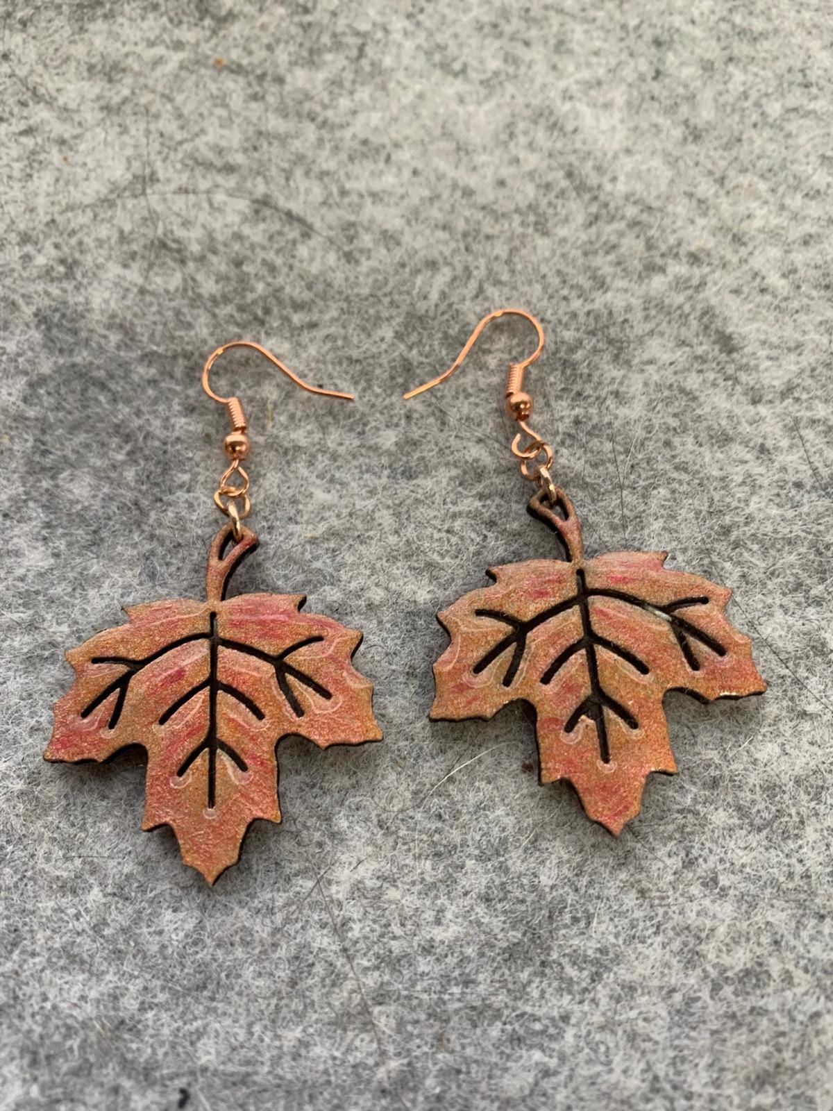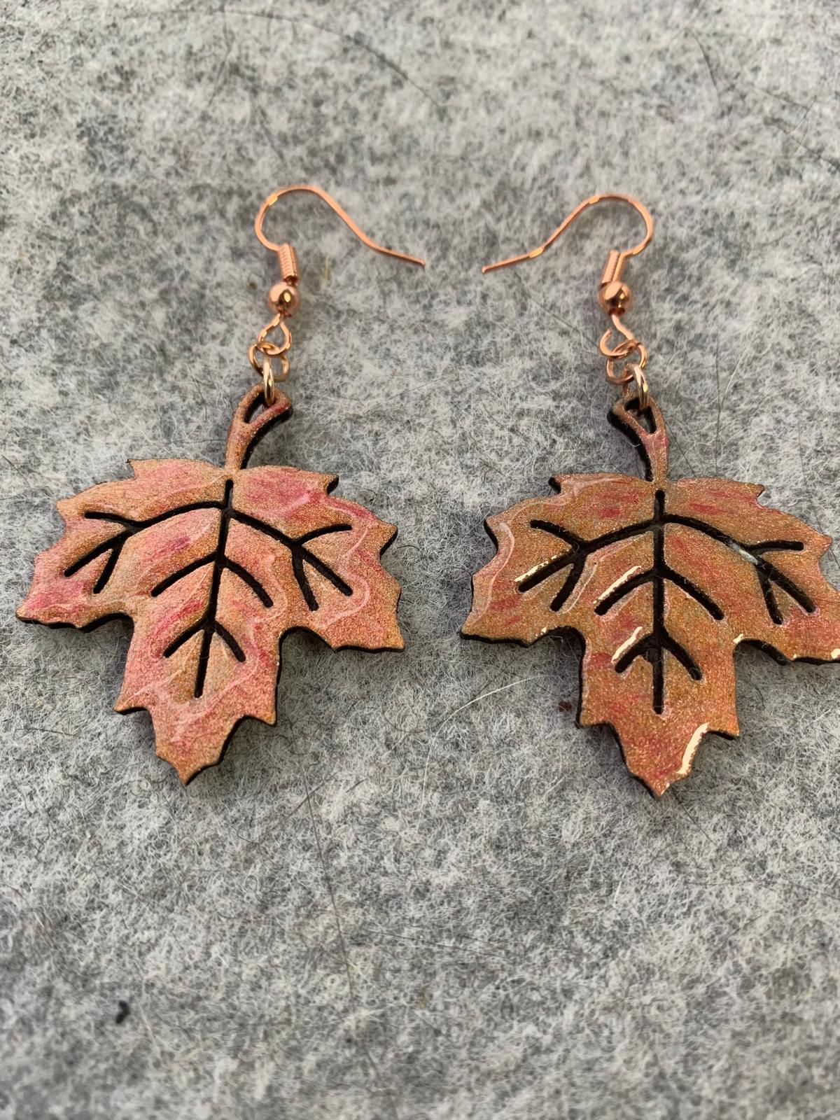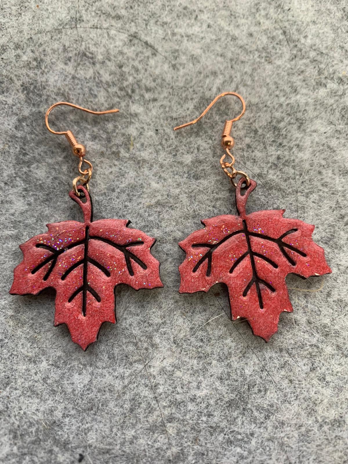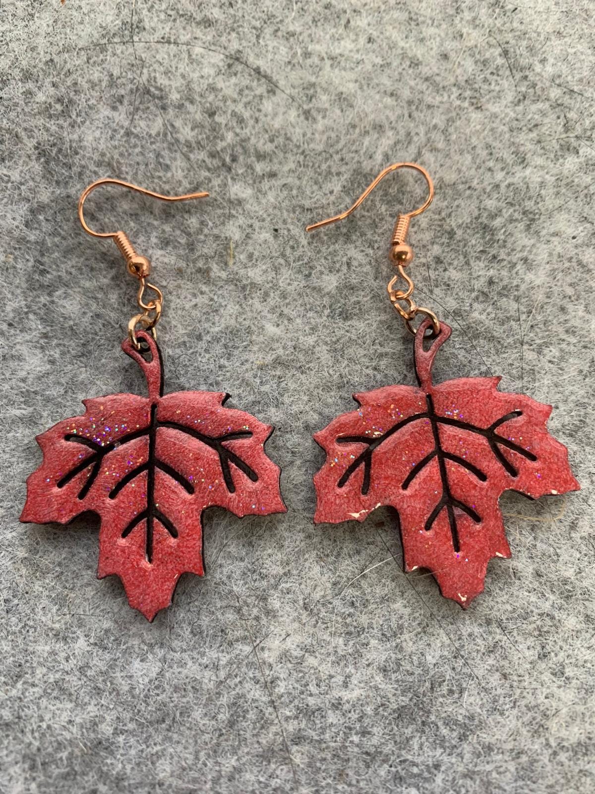 Beautiful, unusual maple-shaped earrings. My own creation. The earrings are decorated on both sides.