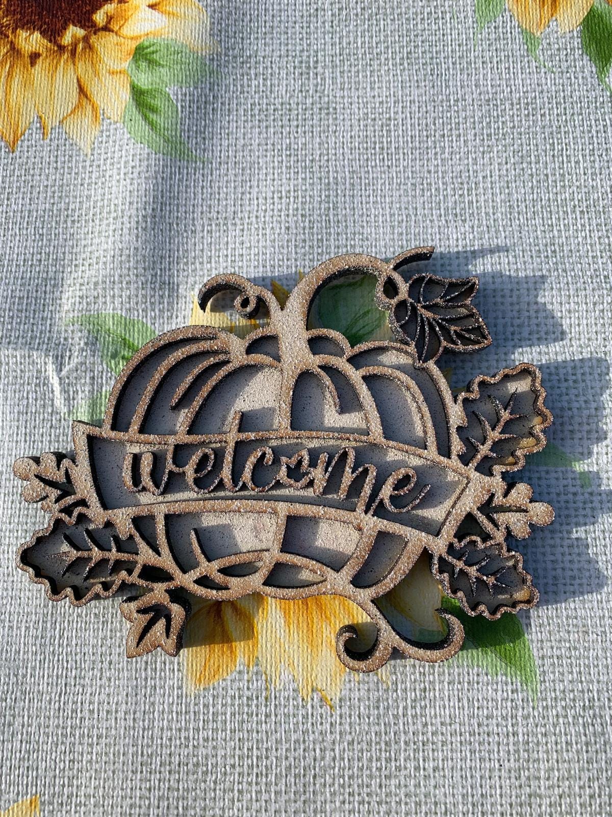 Autumn decoration "Pumpkin Welcome" laser cut.