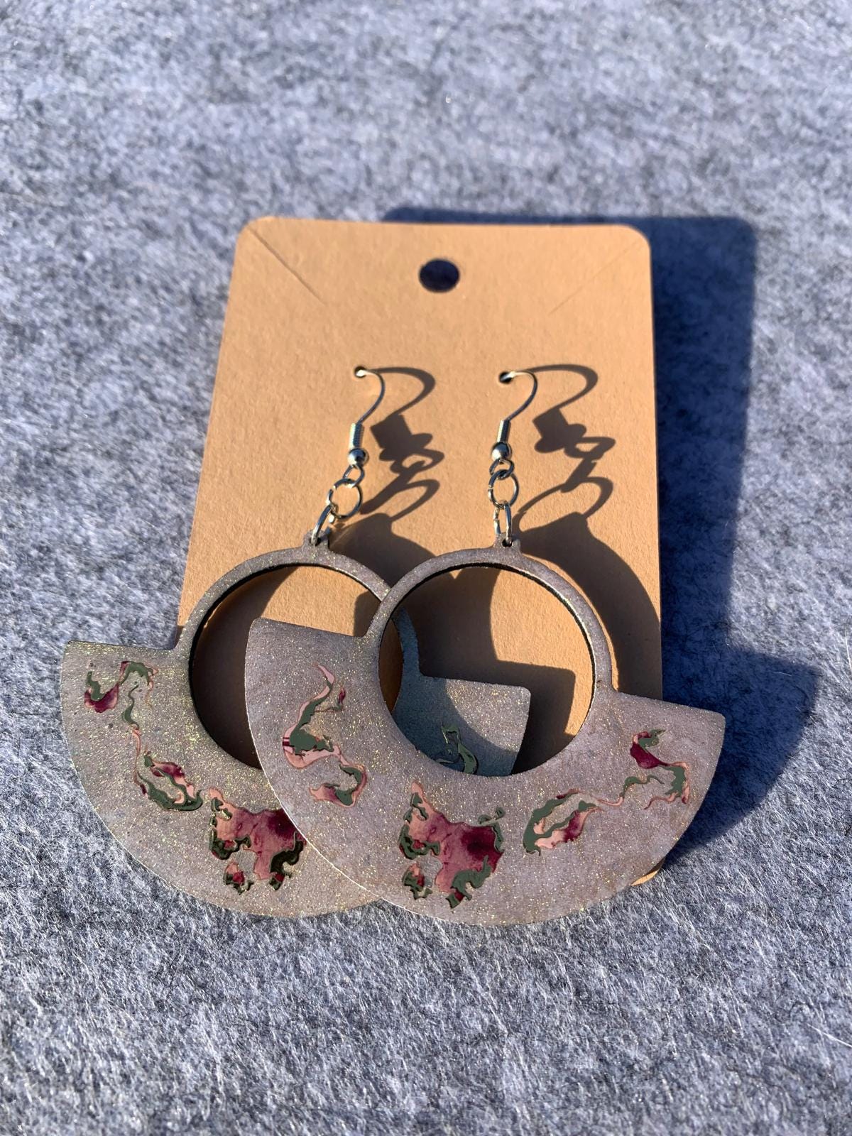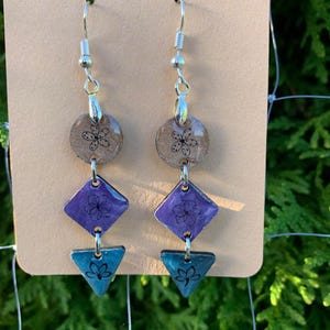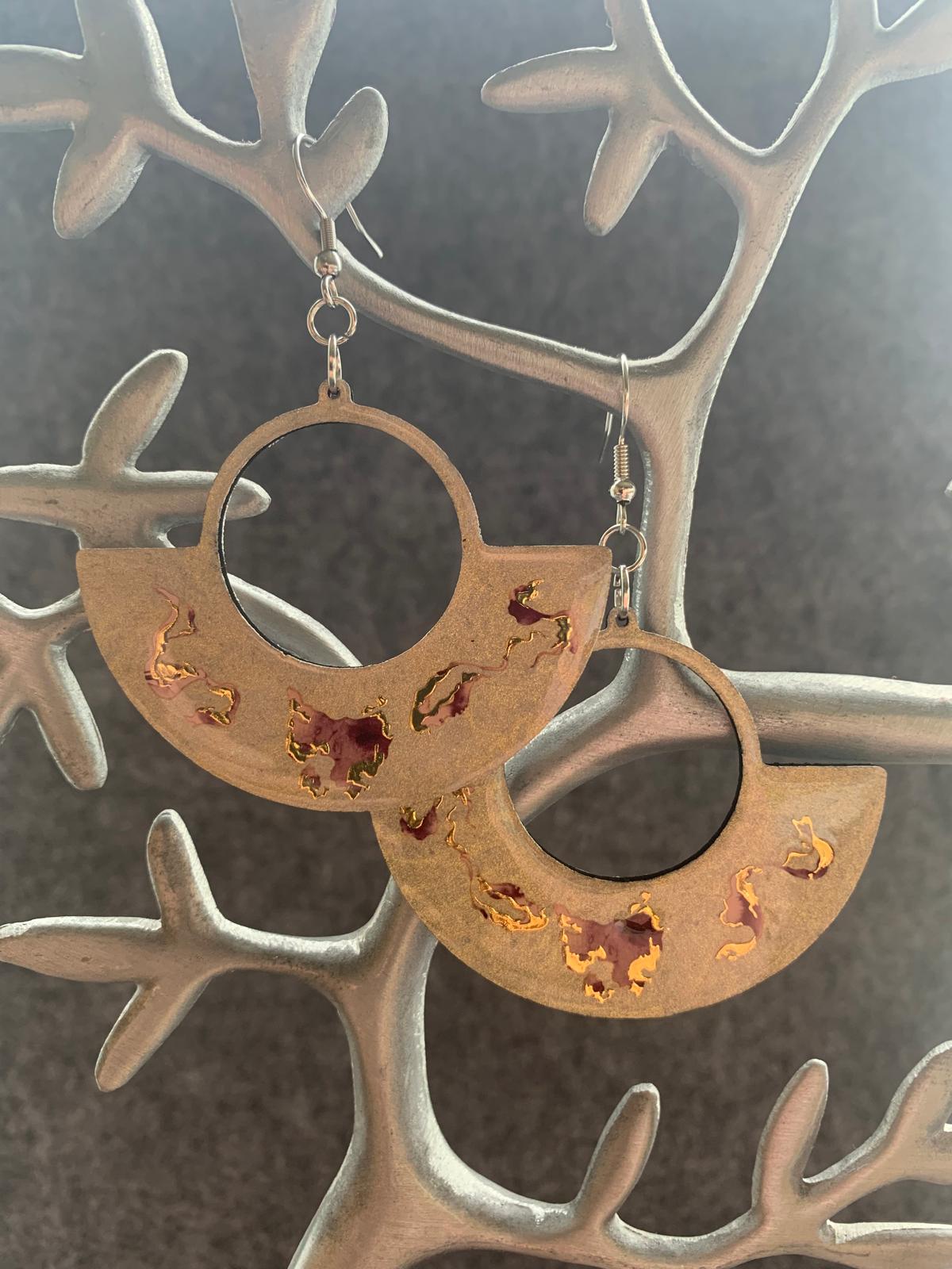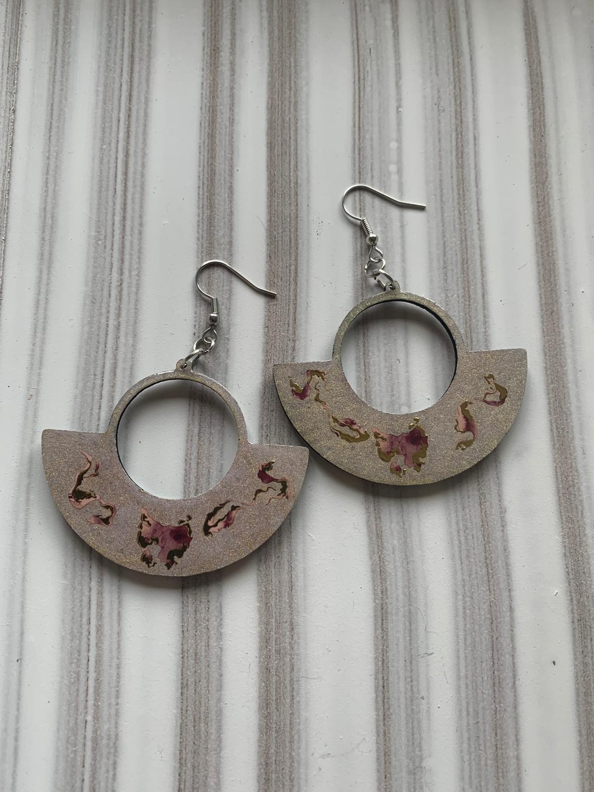 The earrings are approximately 4.5 cm long, including the pendant approximately 6.5 cm. At the widest point, they measure approximately 5.5 cm.