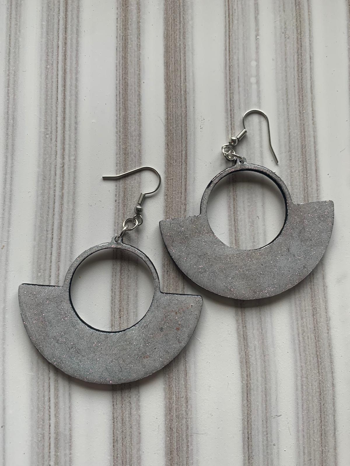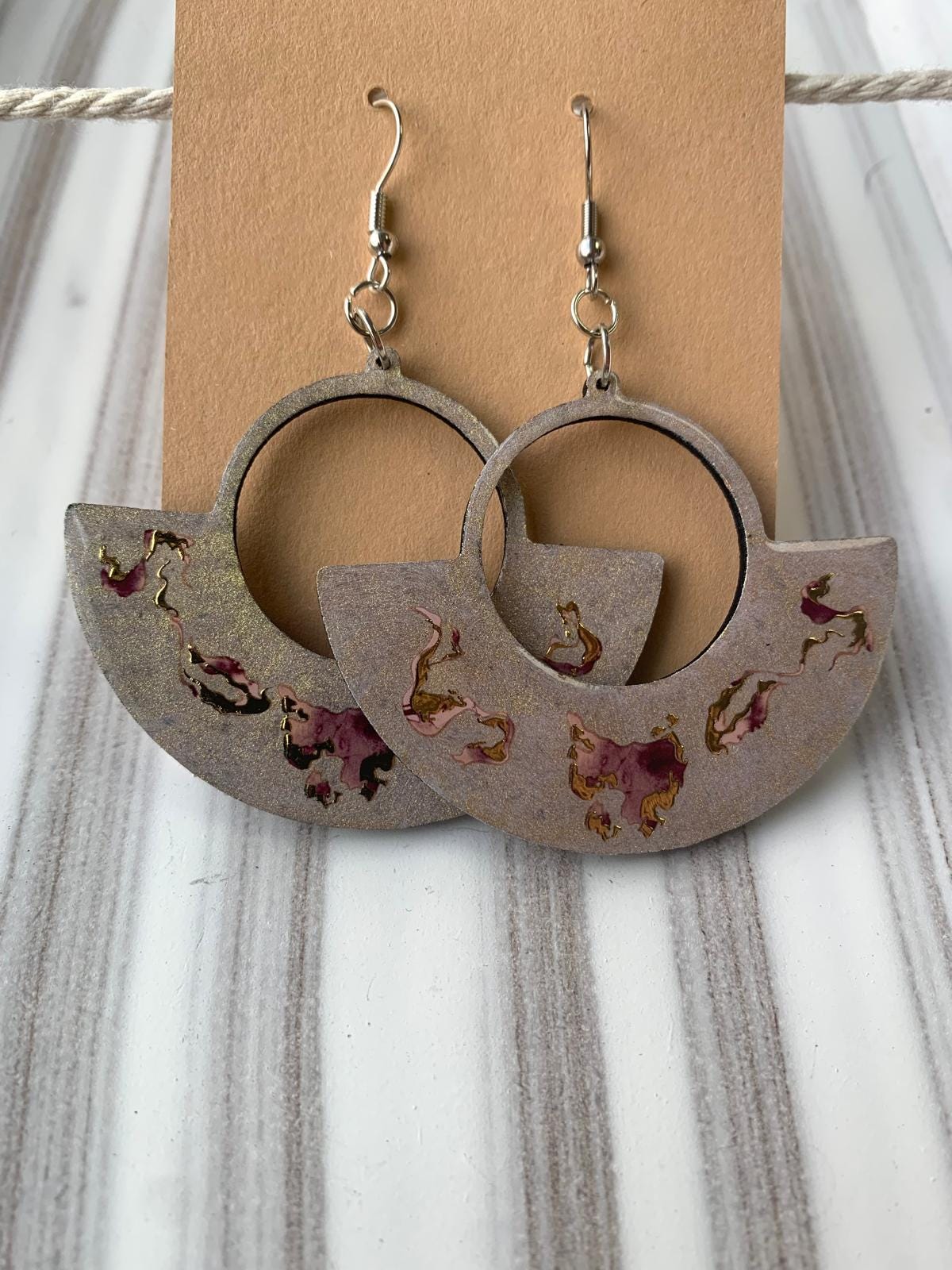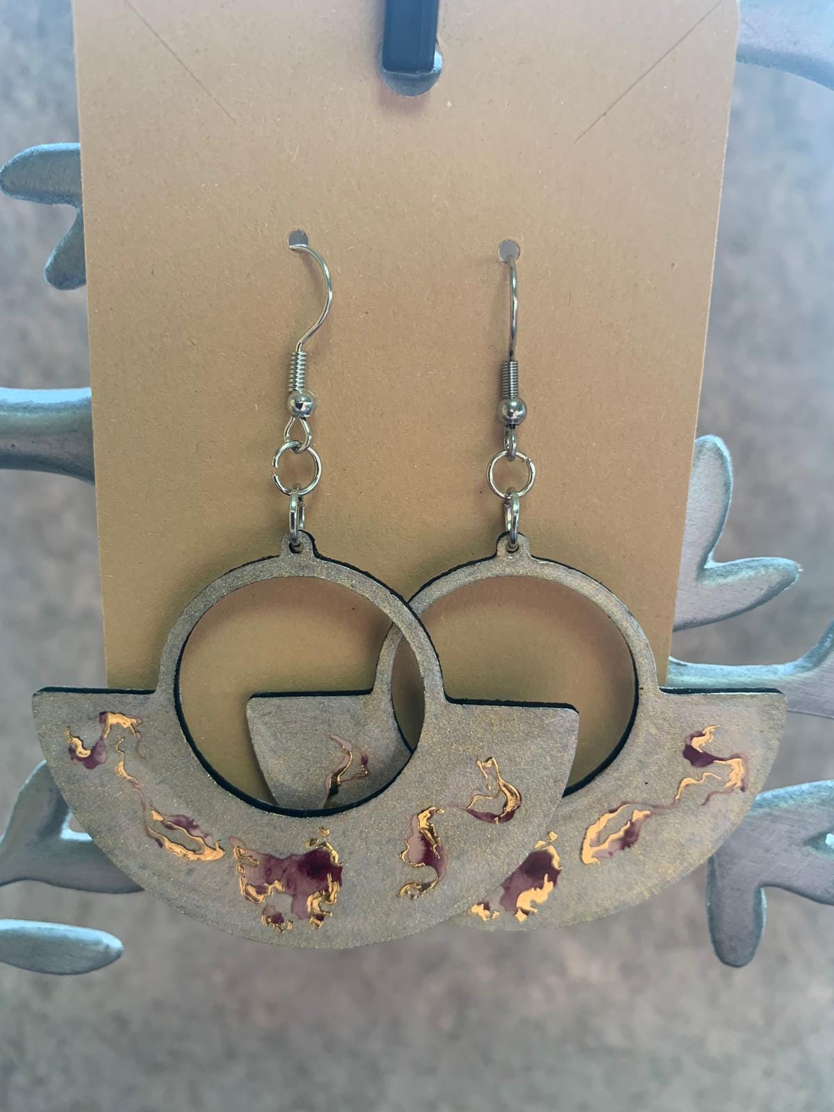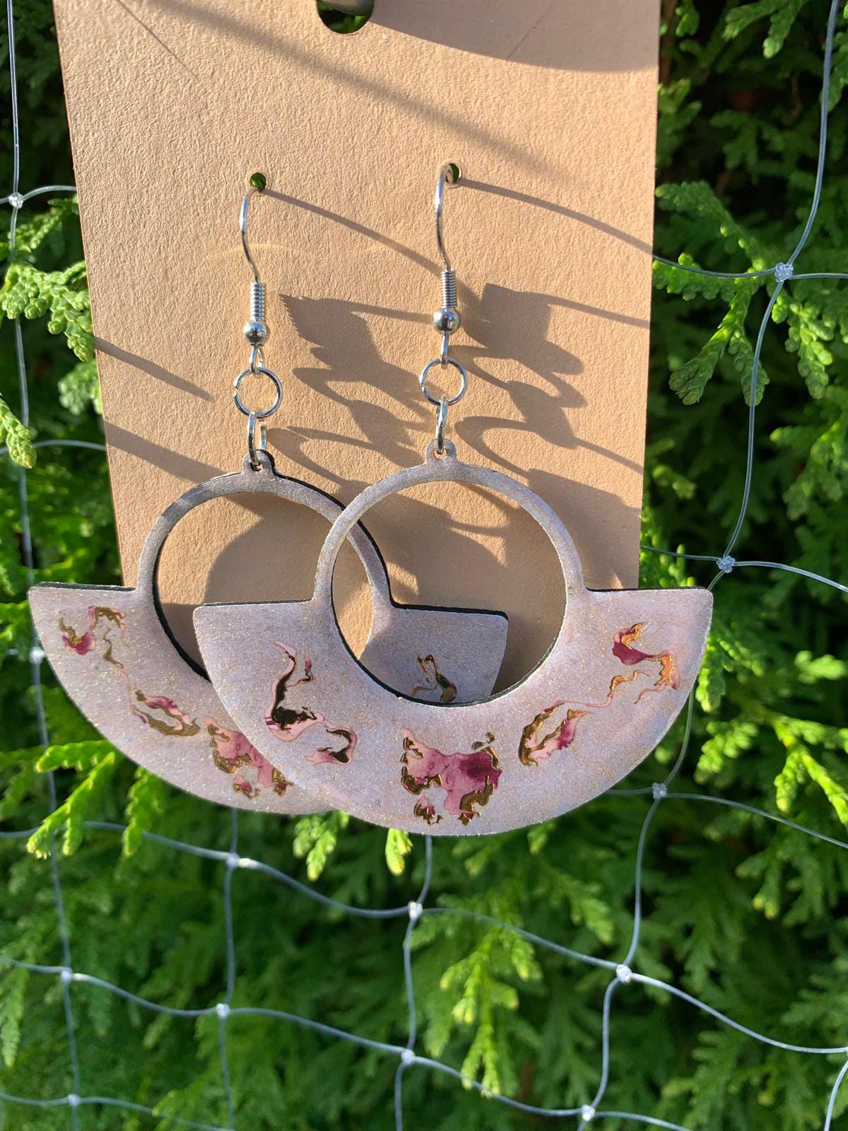 The earrings are approximately 4.5 cm long, including the pendant approximately 6.5 cm. At the widest point, they measure approximately 5.5 cm.