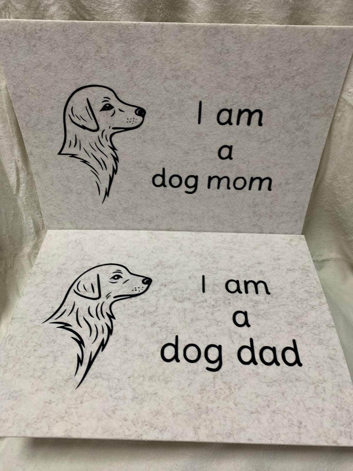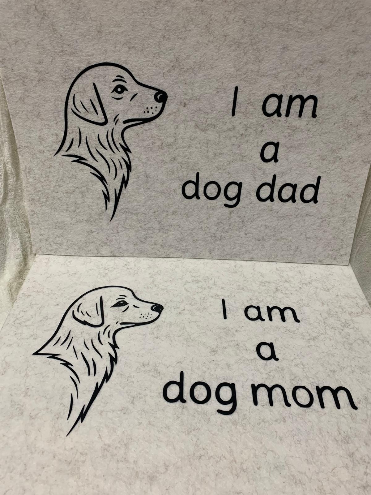 Design: “Dog Mom” & “Dog Dad” with stylized cat motifs