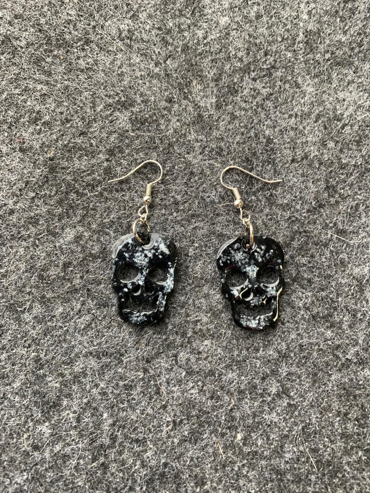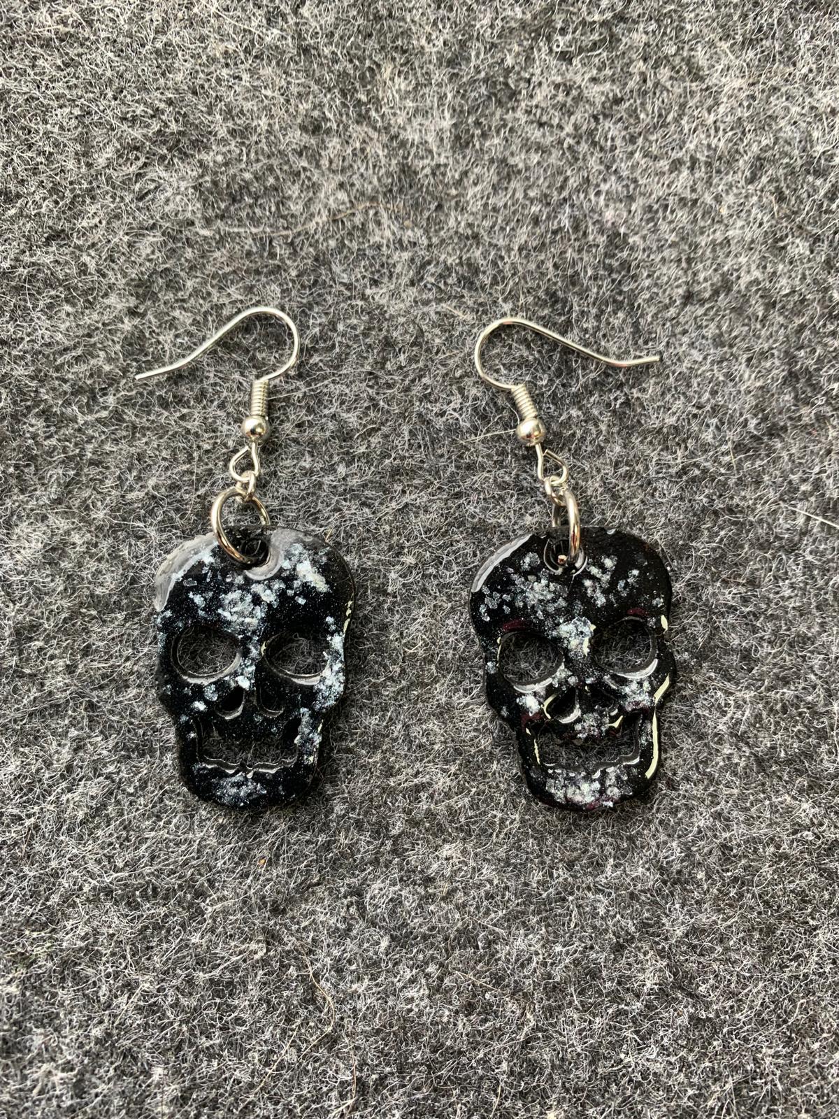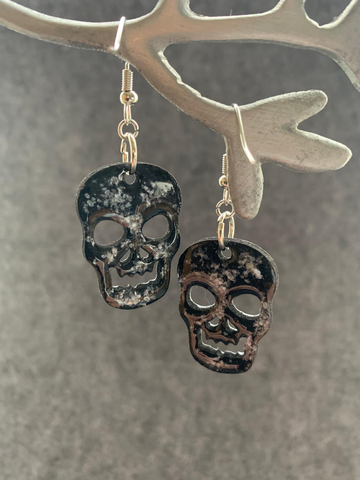 Halloween earrings “Skull” wood & resin, worked on both sides, Gothic jewelry, handmade, spooky, skull.