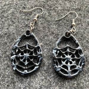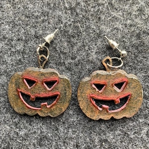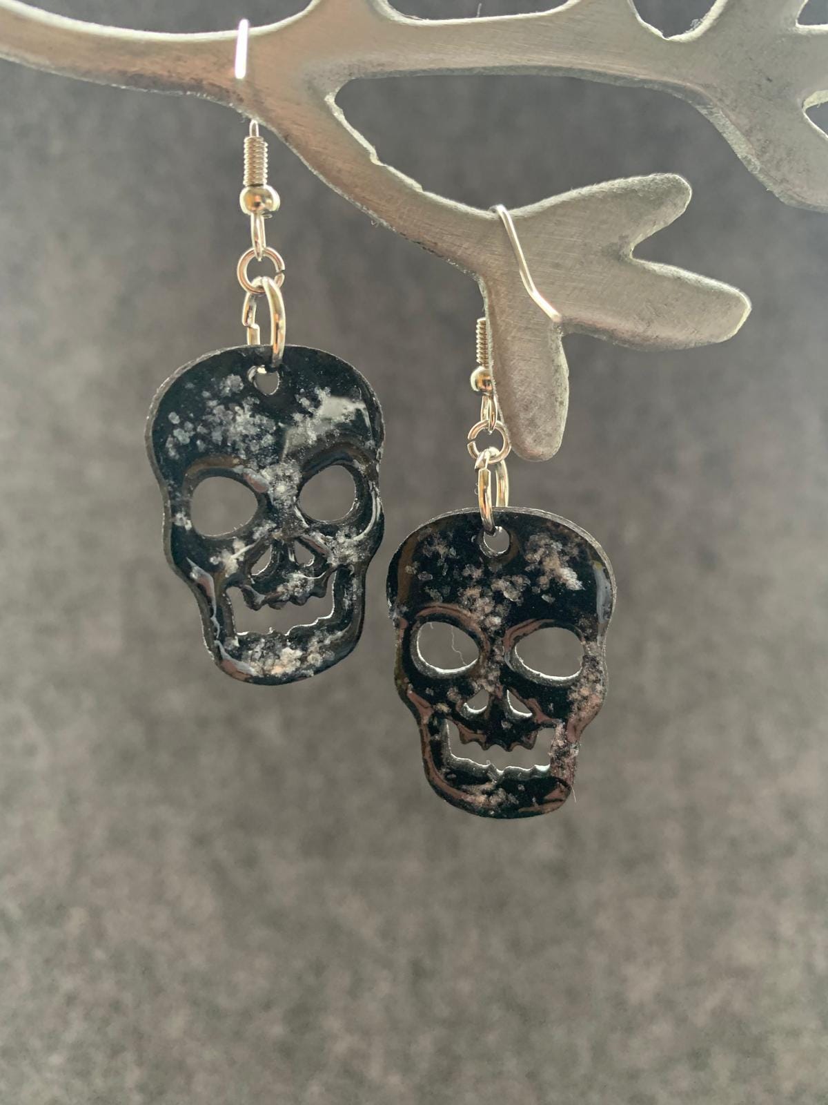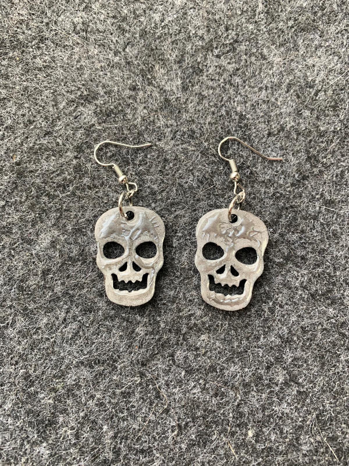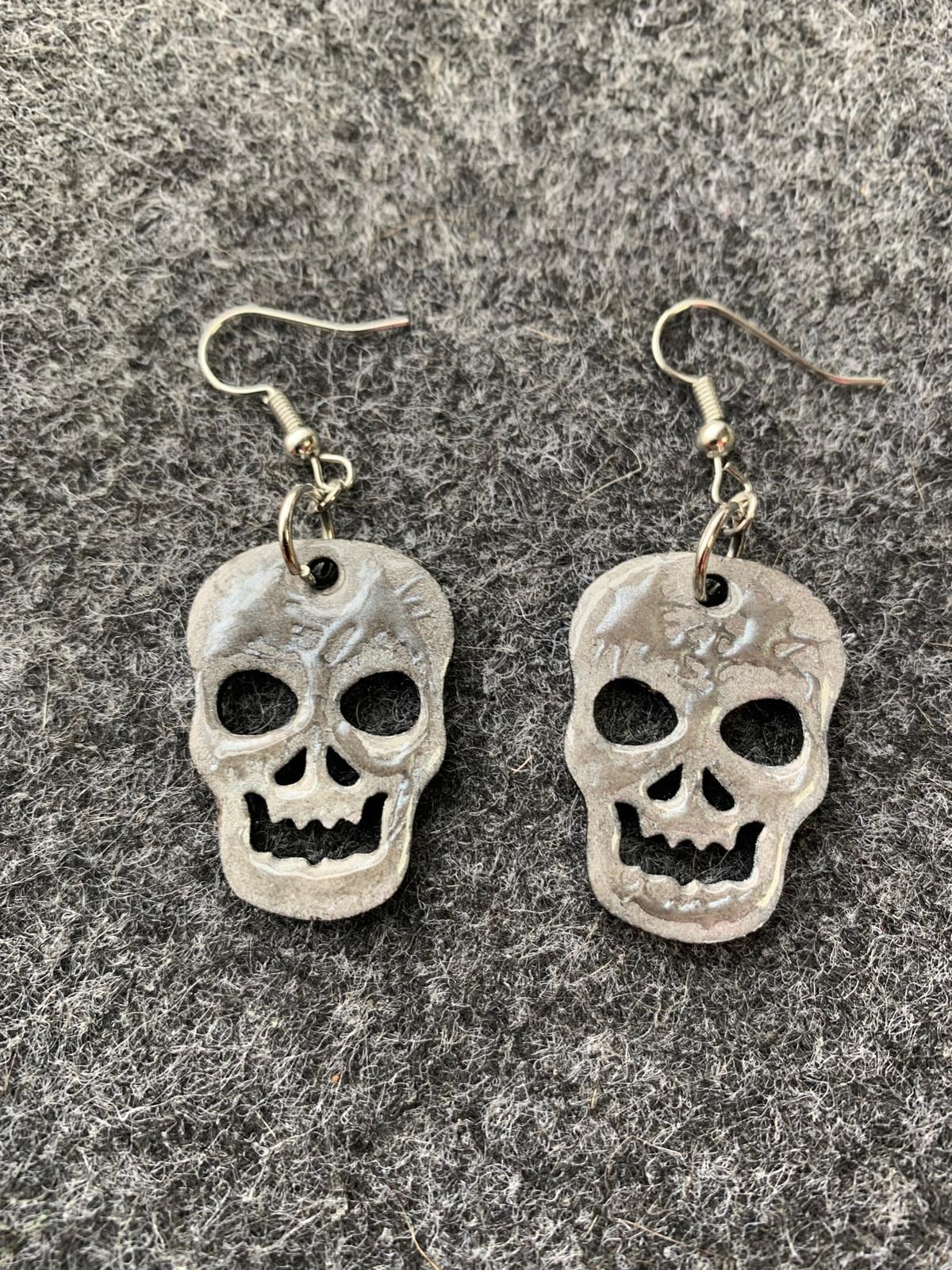 Halloween earrings “Skull” wood & resin, worked on both sides, Gothic jewelry, handmade, spooky, skull.