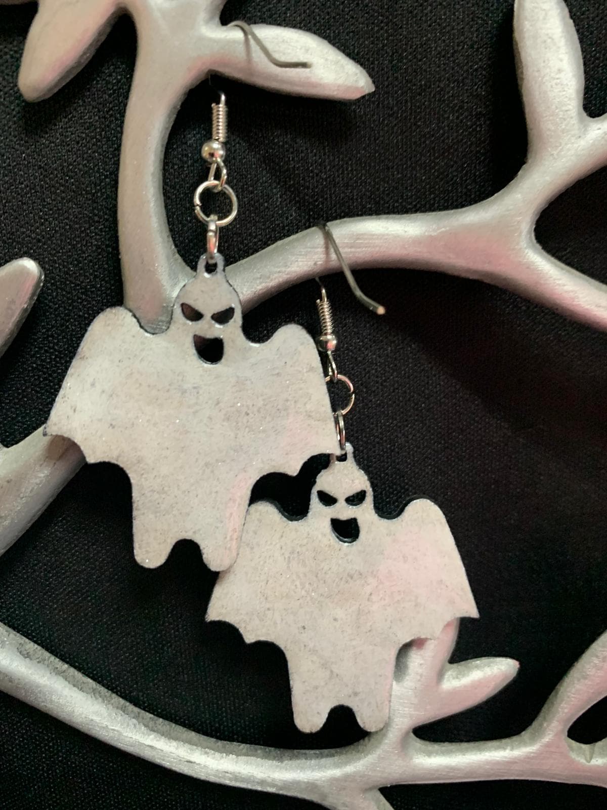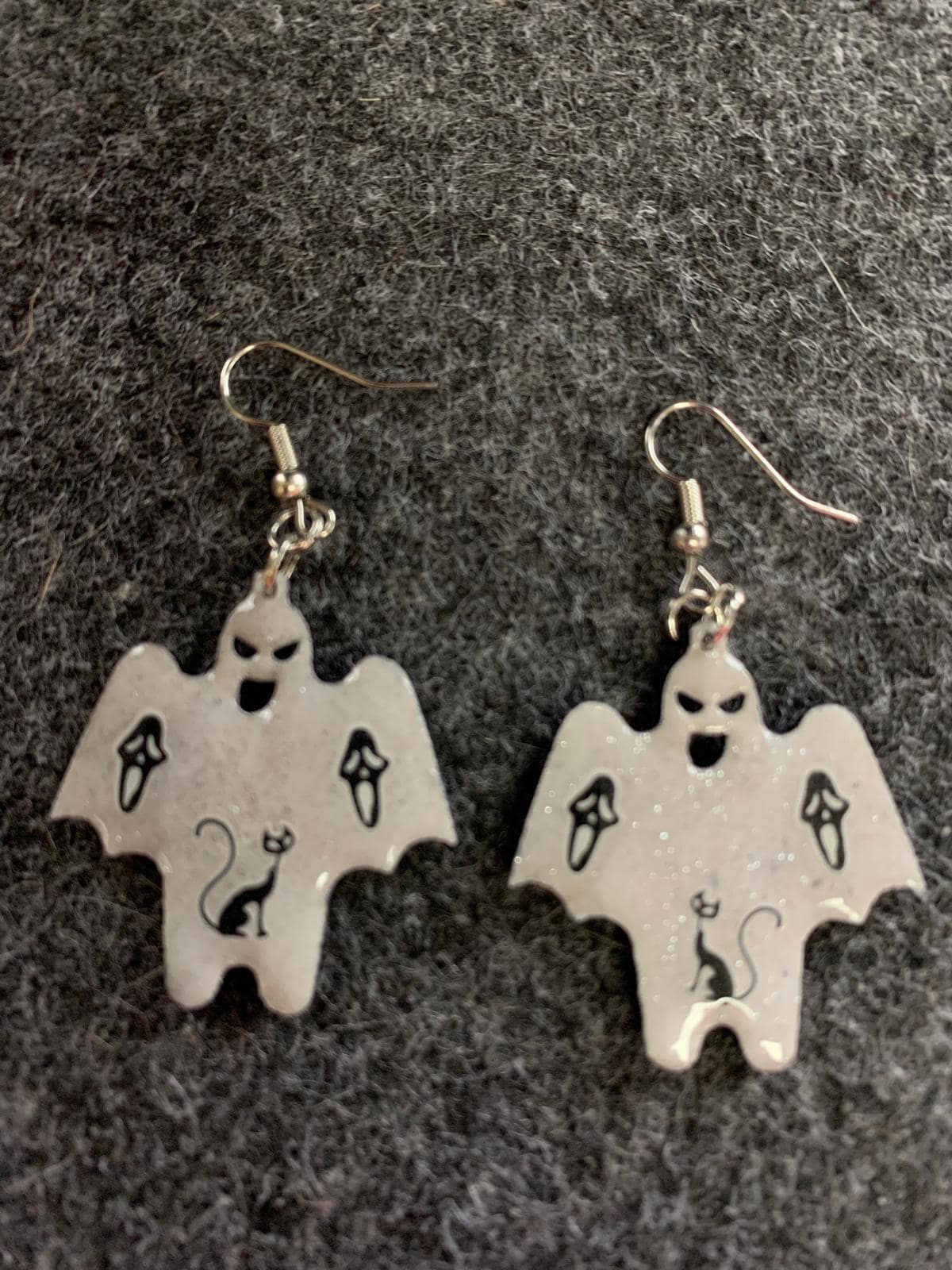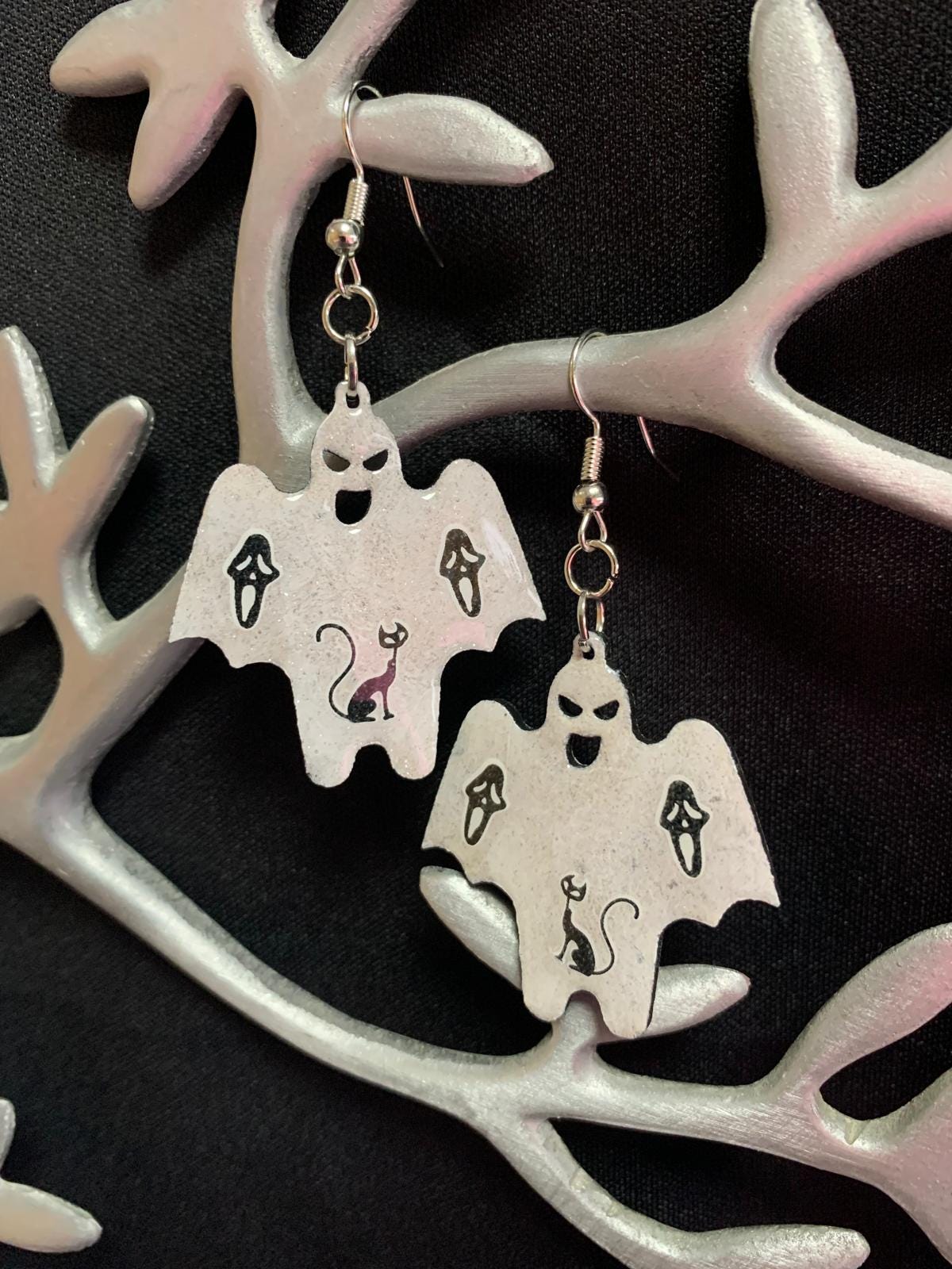 Halloween earrings “Ghost” wood & resin, worked on both sides, Gothic jewelry, handmade, spooky, ghost.