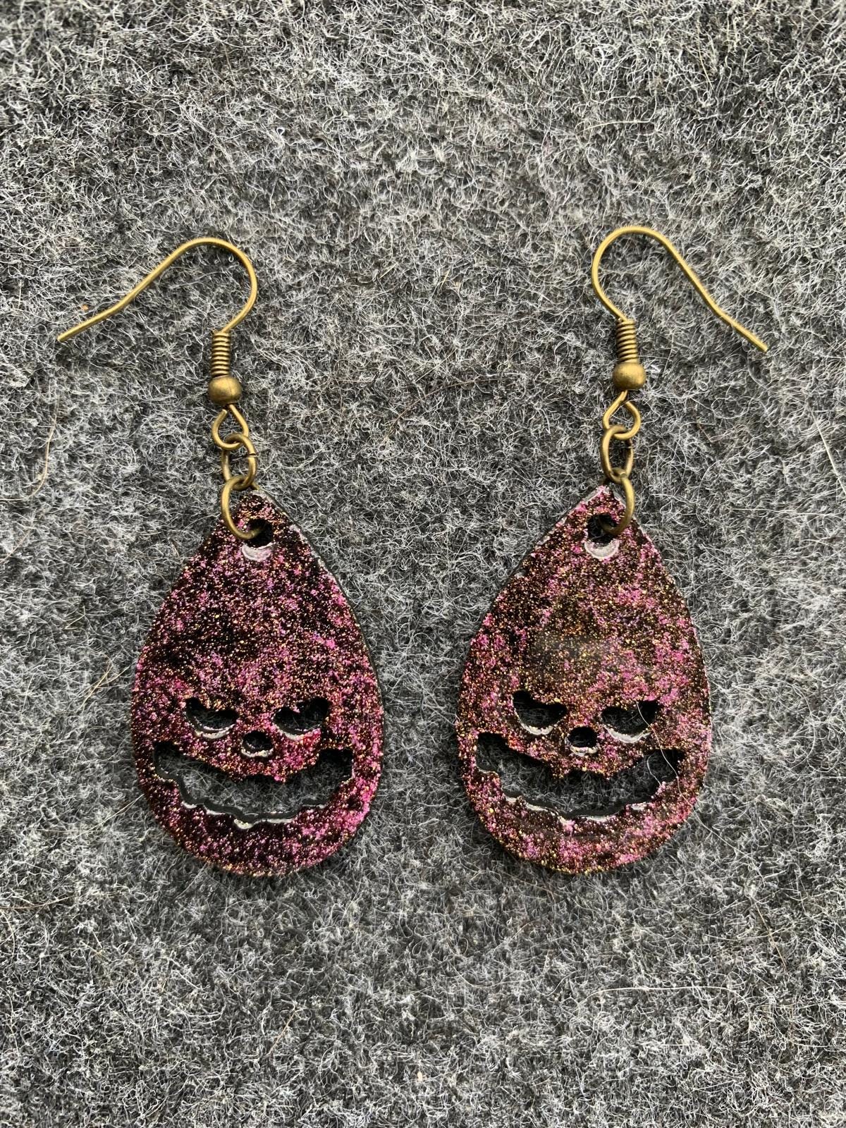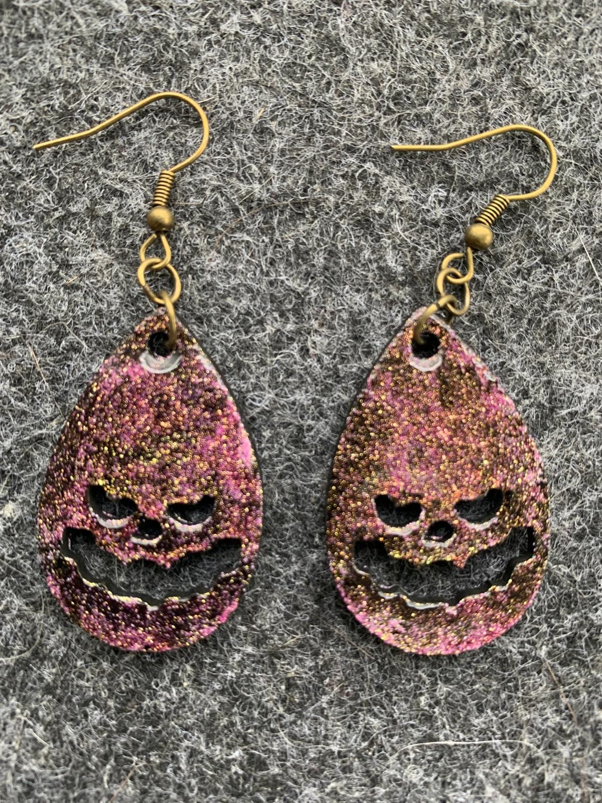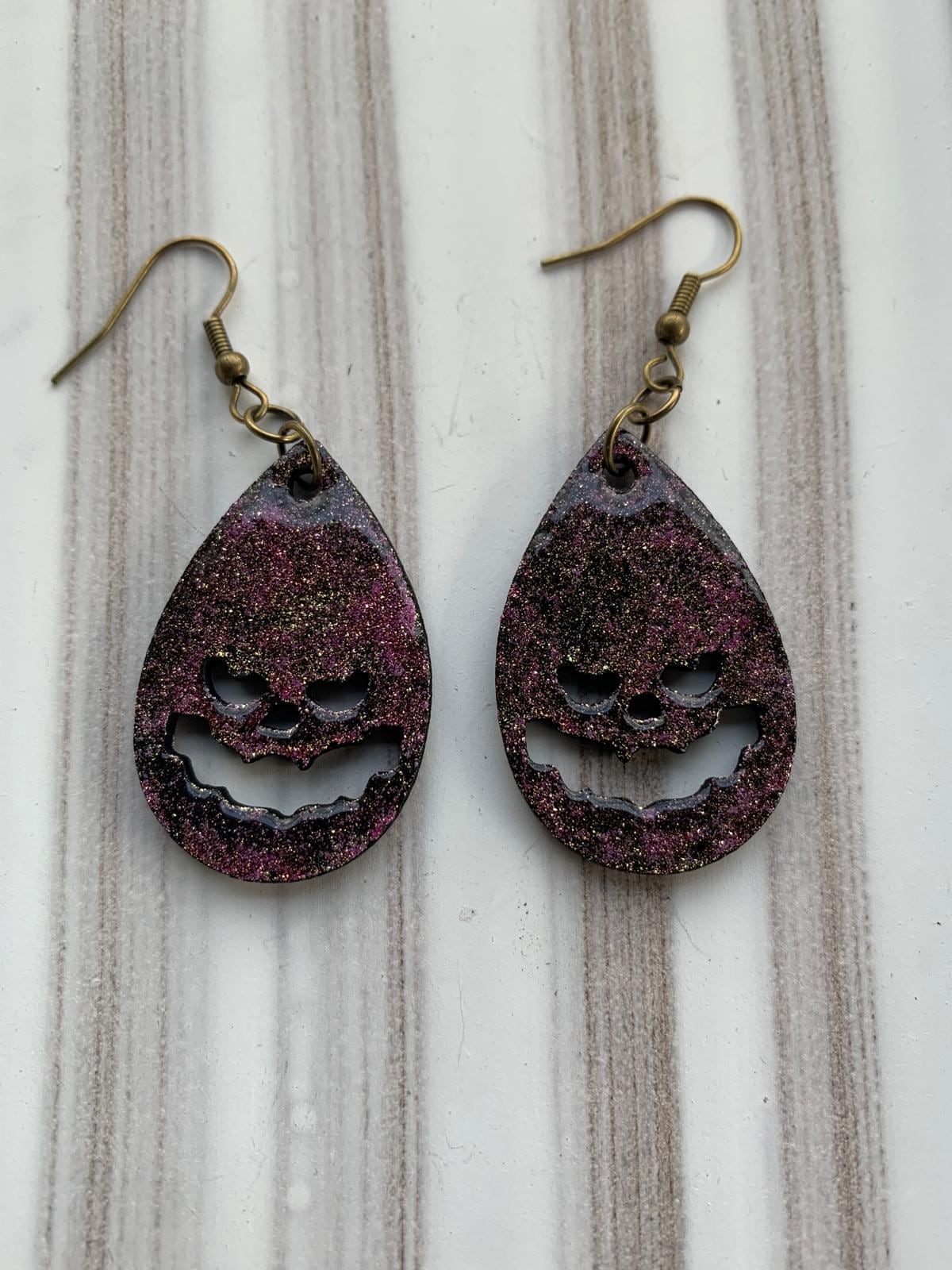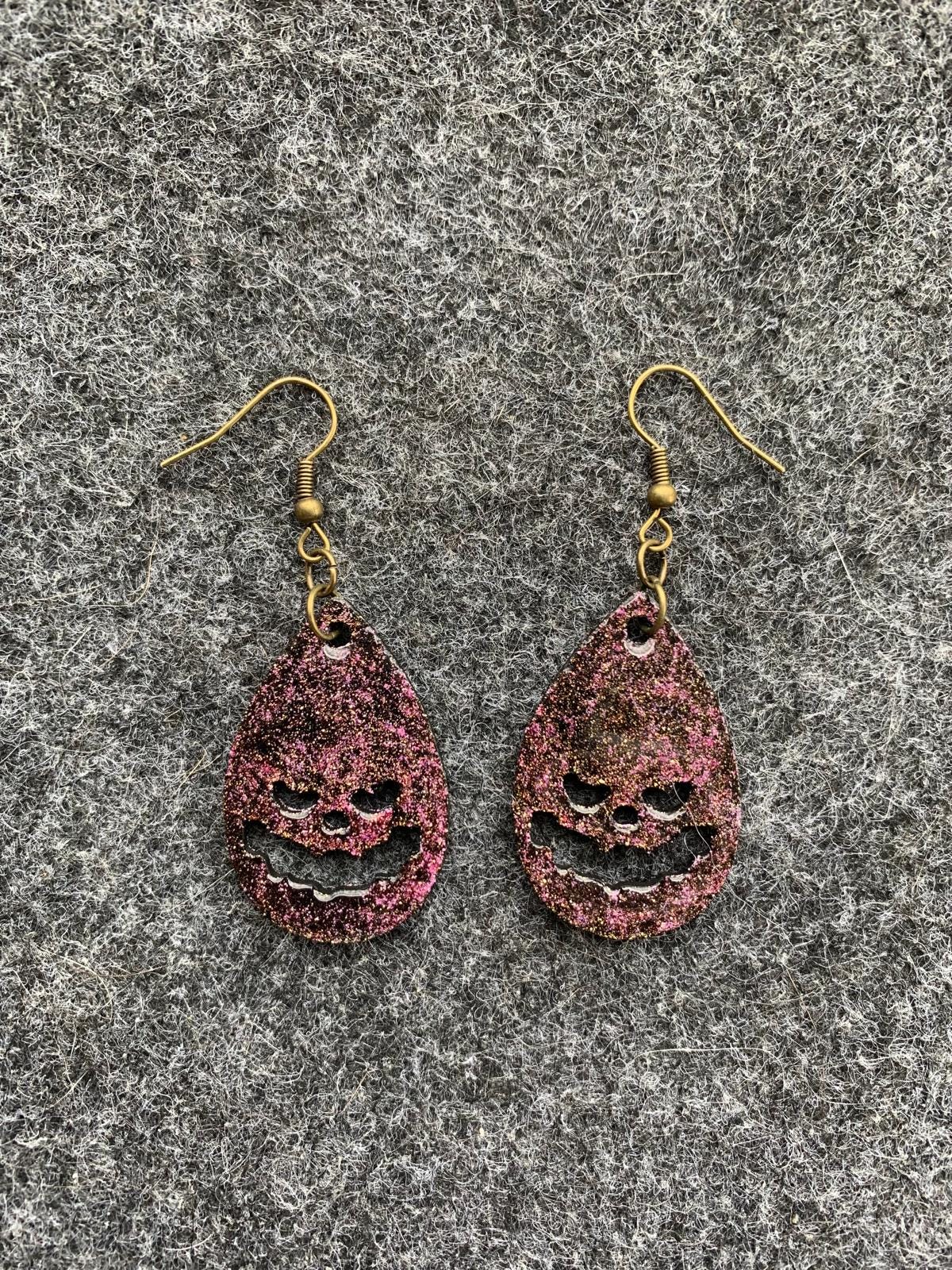 These handmade Halloween earrings are the perfect accessory for those who love dark and stylish things. The unusual, shimmering ghost motif made of wood and resin creates a striking look. Ideal for Halloween, festivals, or everyday wear with a touch of gothic.