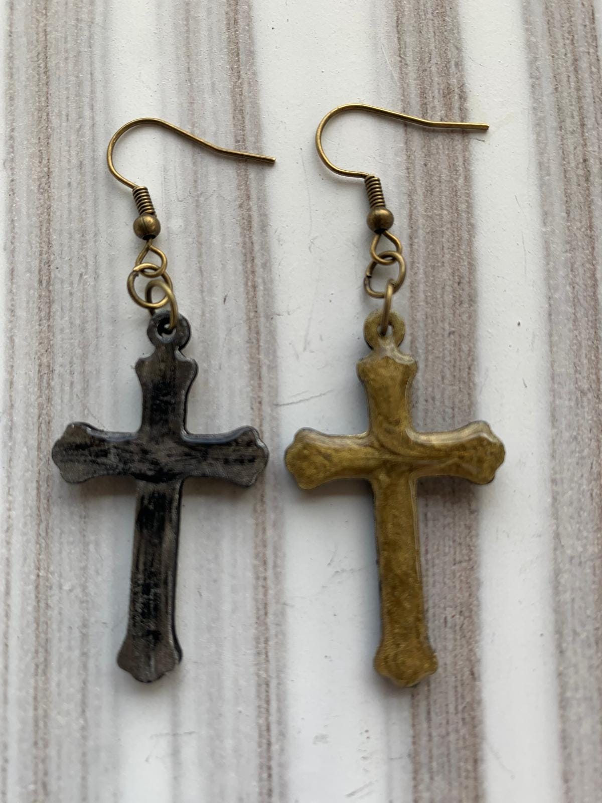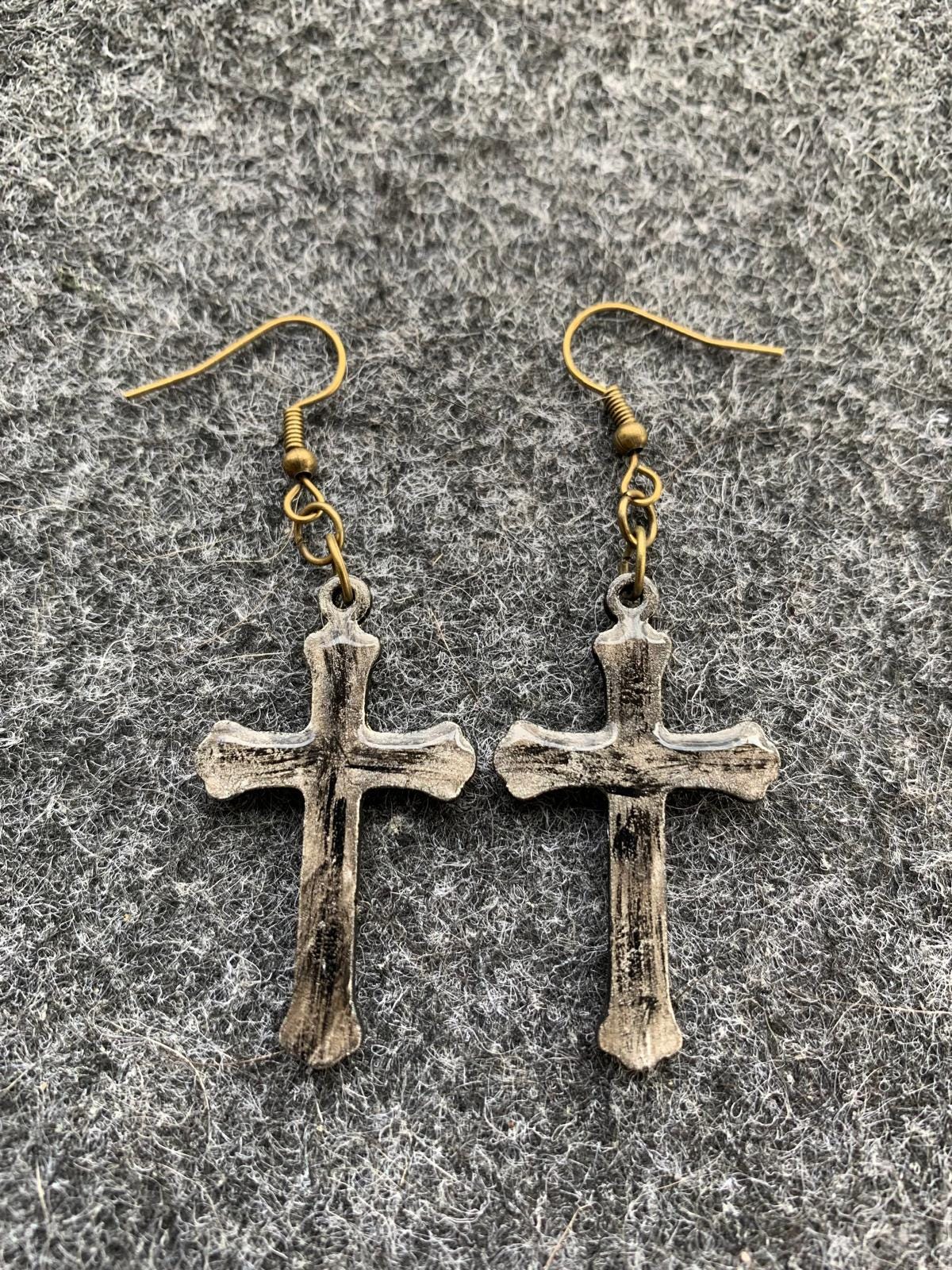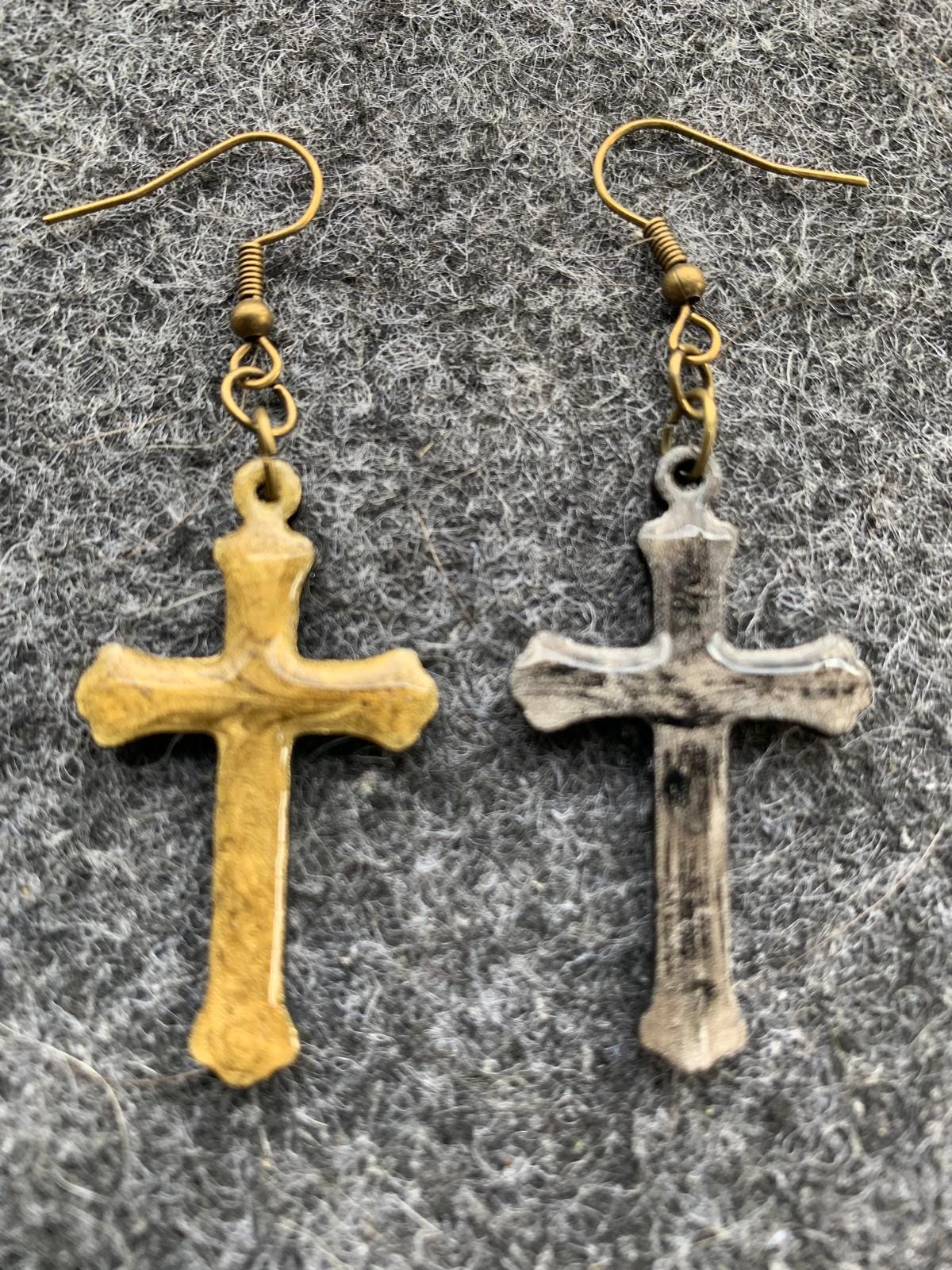 Halloween earrings “Cross” wood & resin, worked on both sides, Gothic jewelry, handmade, spooky, cross.