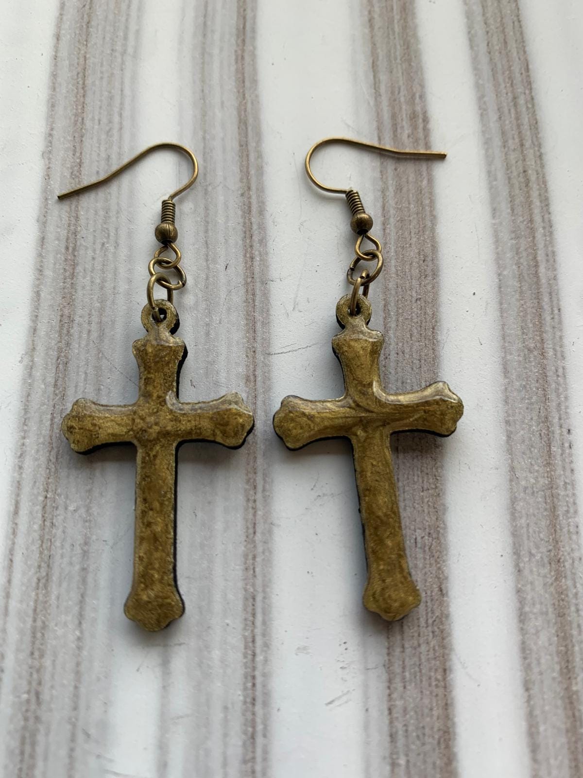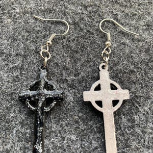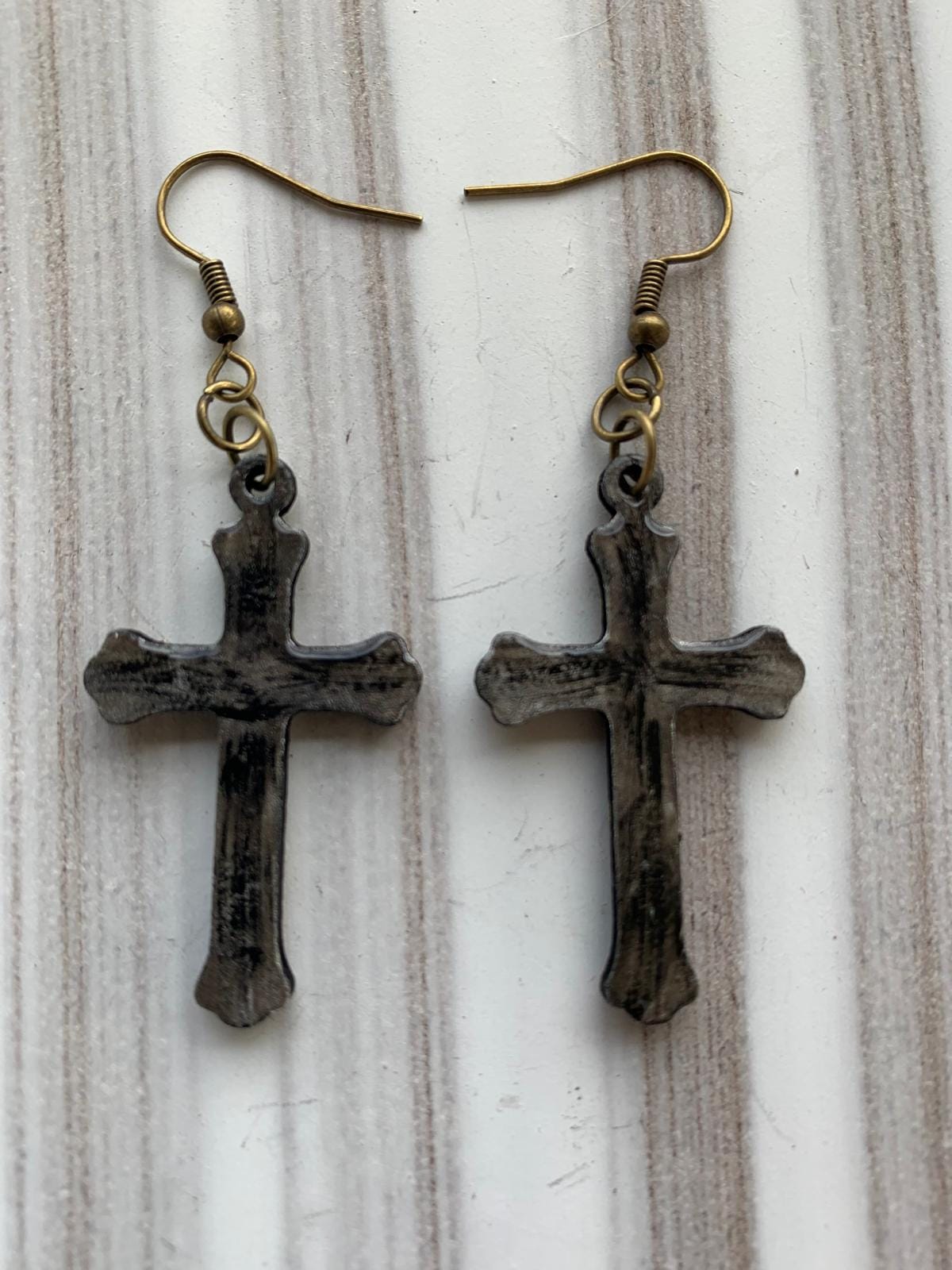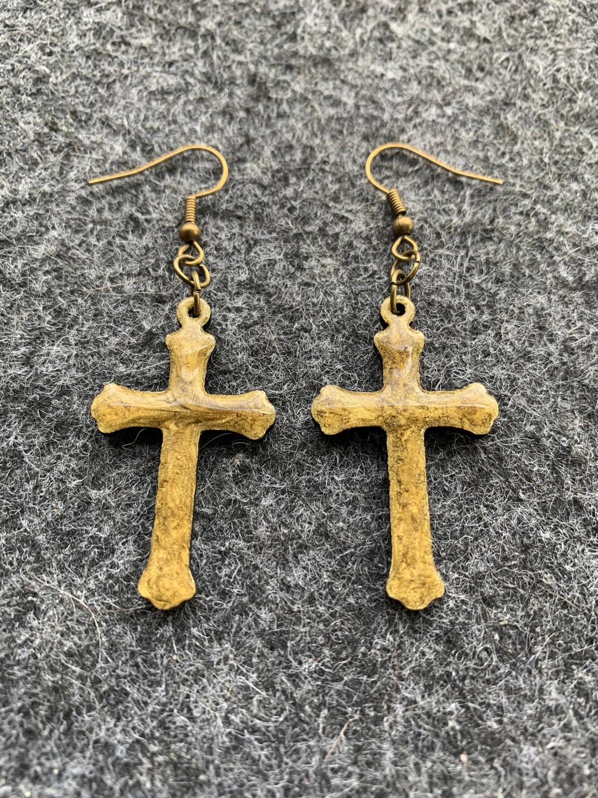 Halloween earrings “Cross” wood & resin, worked on both sides, Gothic jewelry, handmade, spooky, cross.