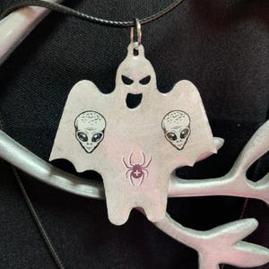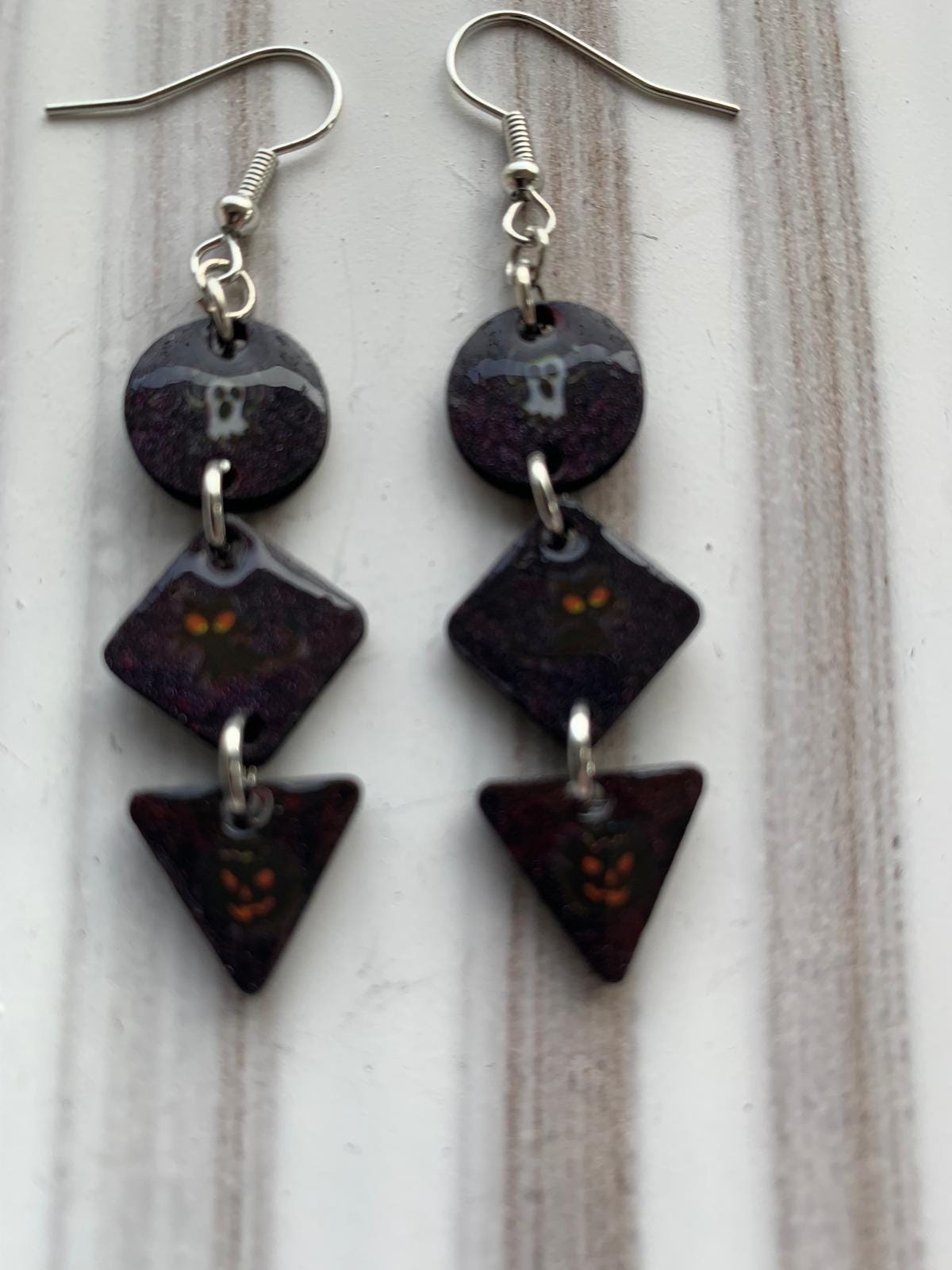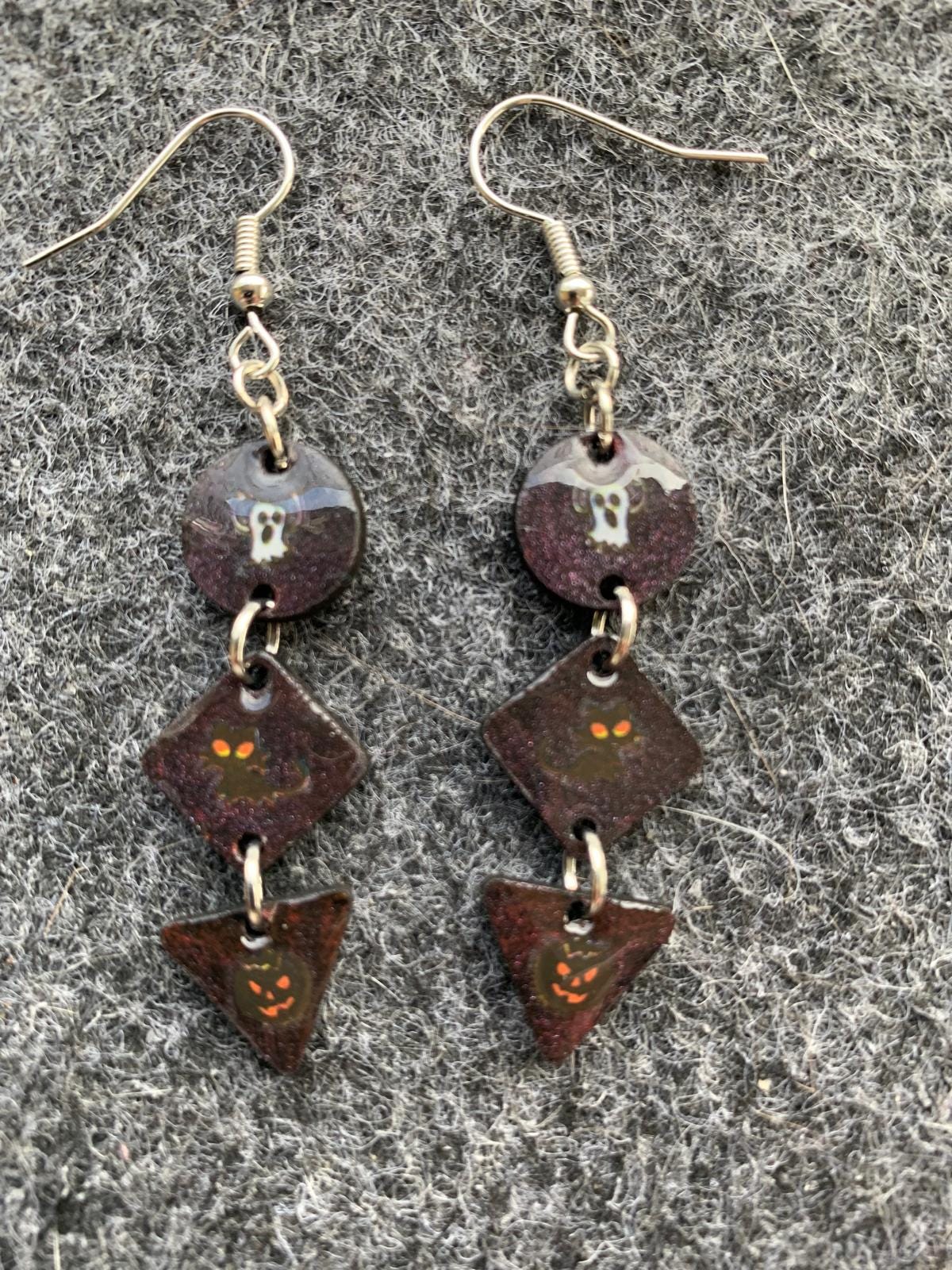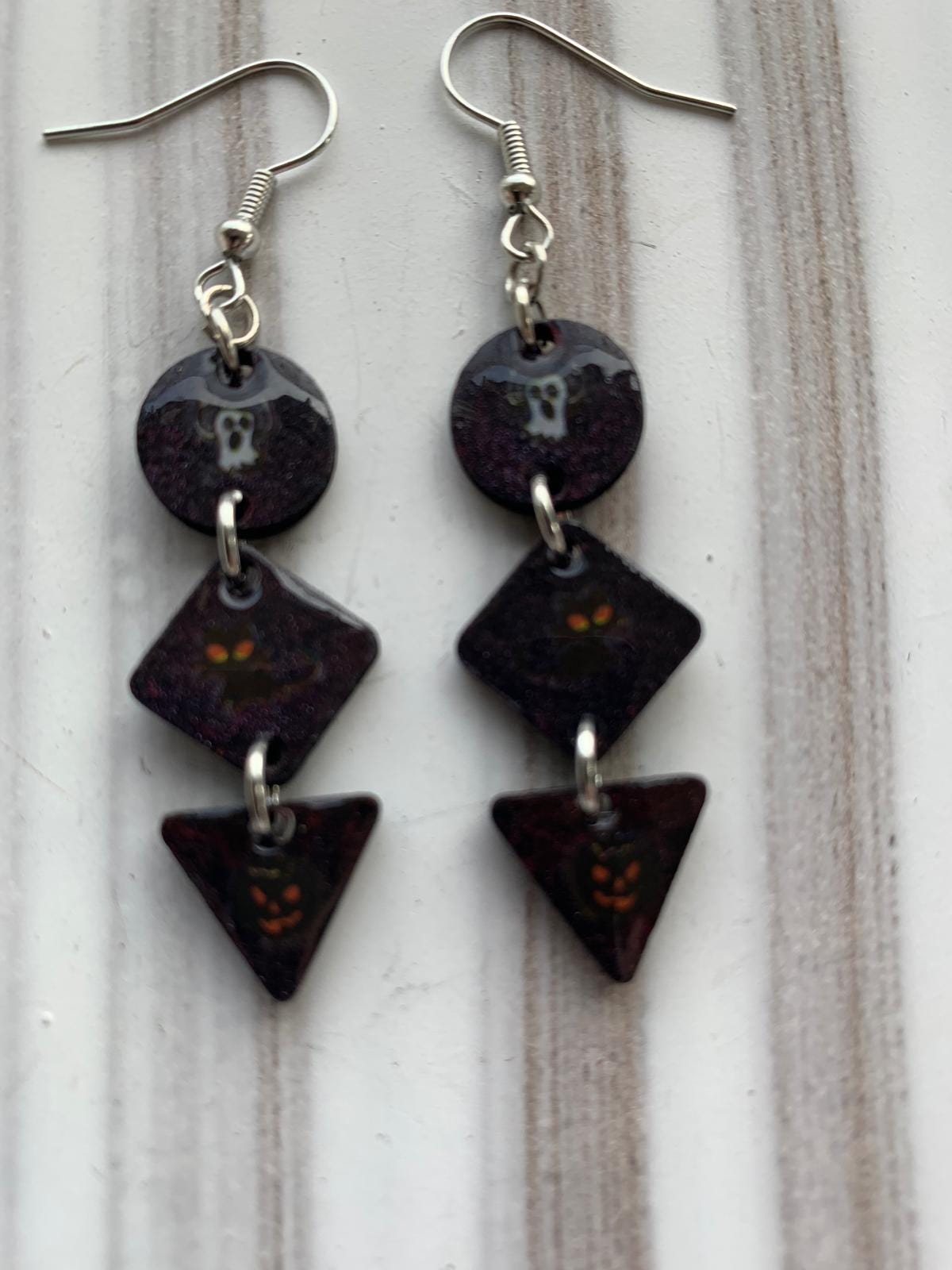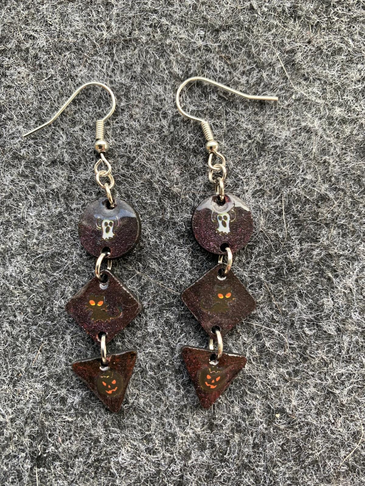 These handmade Halloween earrings are the perfect accessory for those who love dark and stylish things. The unusual, shimmering ghost motif made of wood and resin creates a striking look. Ideal for Halloween, festivals, or everyday wear with a touch of gothic.