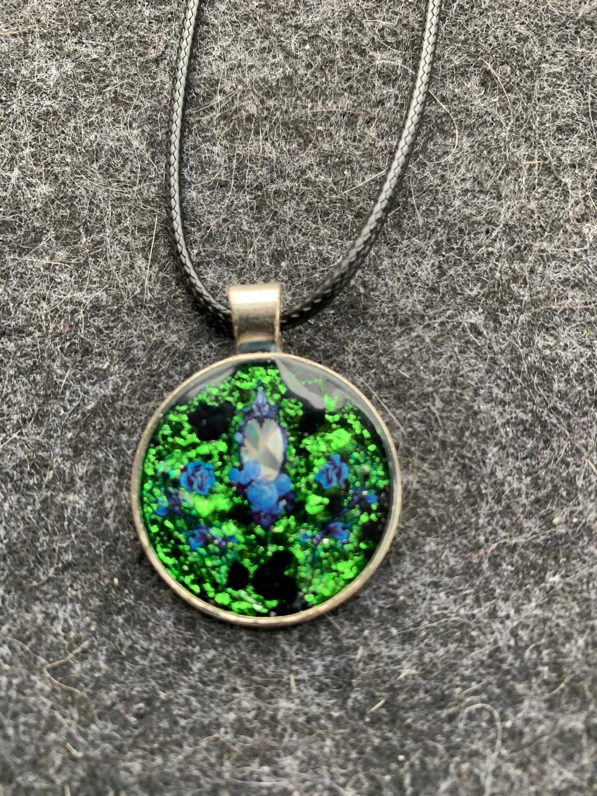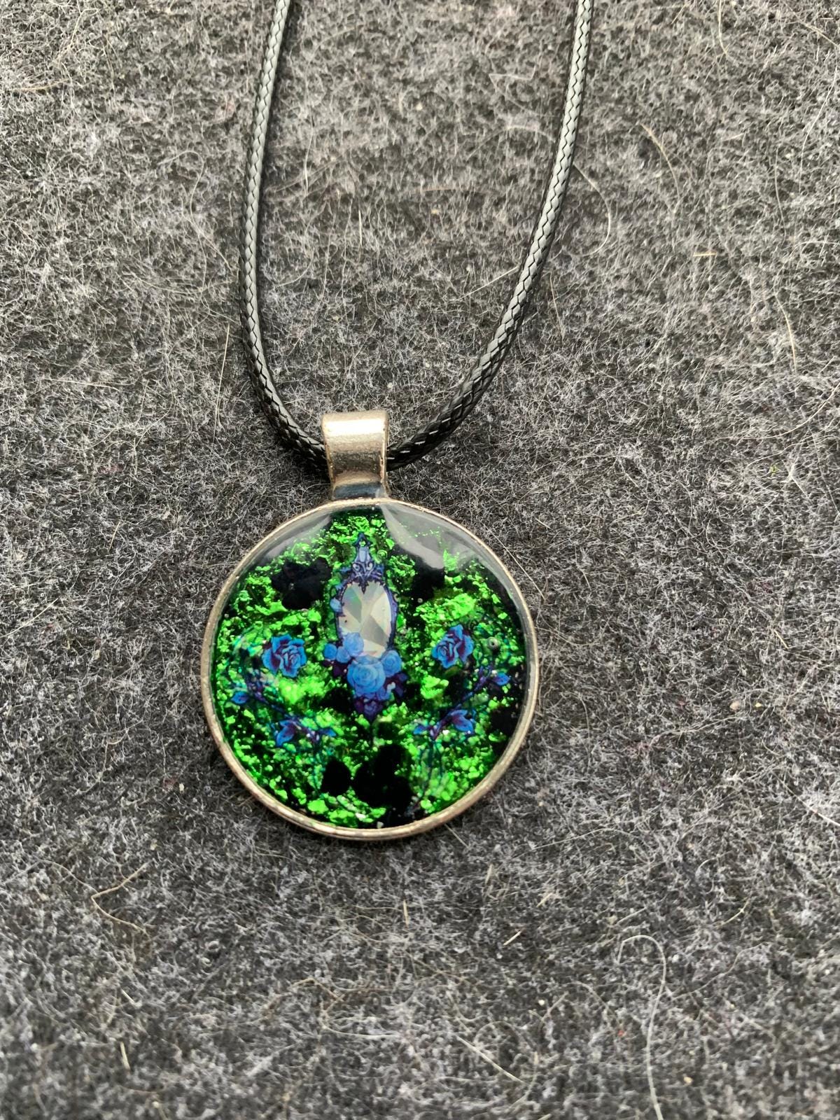 This handmade Halloween necklace is the perfect accessory for those who love dark and stylish looks. The unusual, shimmering metal and resin motif creates a striking look. Ideal for Halloween, festivals, or everyday wear with a touch of gothic.