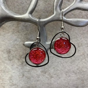 “Smiley” earrings – resin with color play & metal setting – handmade feel-good jewelry