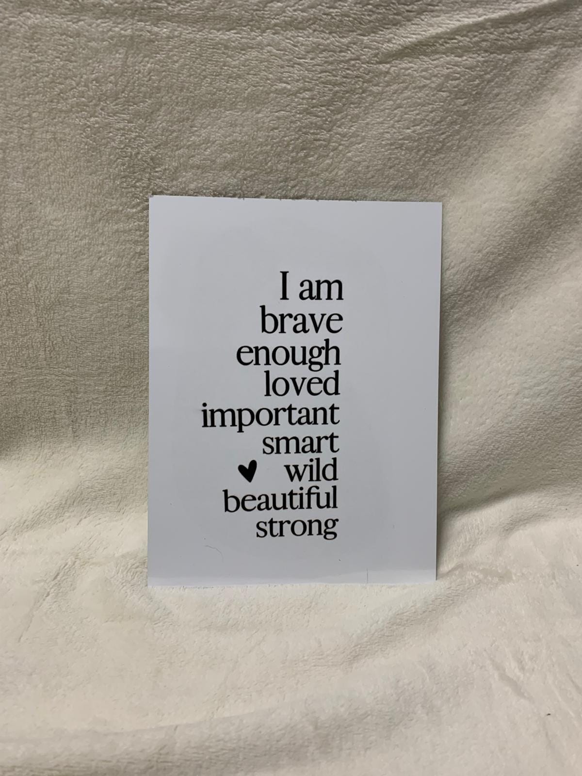 "I am brave, enough, loved, important, smart, wild, beautiful, strong"